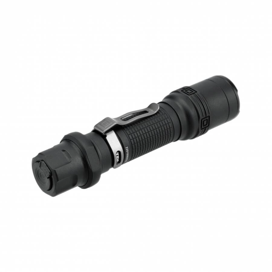 Latarka wyposażona jest w zdejmowany klips ze stali nierdzewnej oraz pierścień taktyczny. Wytrzymała obudowa z anodowanego aluminium jest wodoodporna zgodnie z normą IPX8
