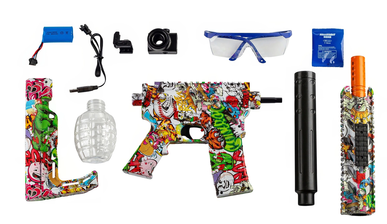 UWAGA! ZDJĘCIE POGLĄDOWE. WZÓR MALOWANIA PISTOLETU MOŻE NIEZNACZNIE RÓŻNIĆ SIĘ OD TEGO PRZEDSTAWIONEGO NA FOTOGRAFII. ZESTAW NIE ZAWIERA GOTOWYCH KULEK ŻELOWYCH.