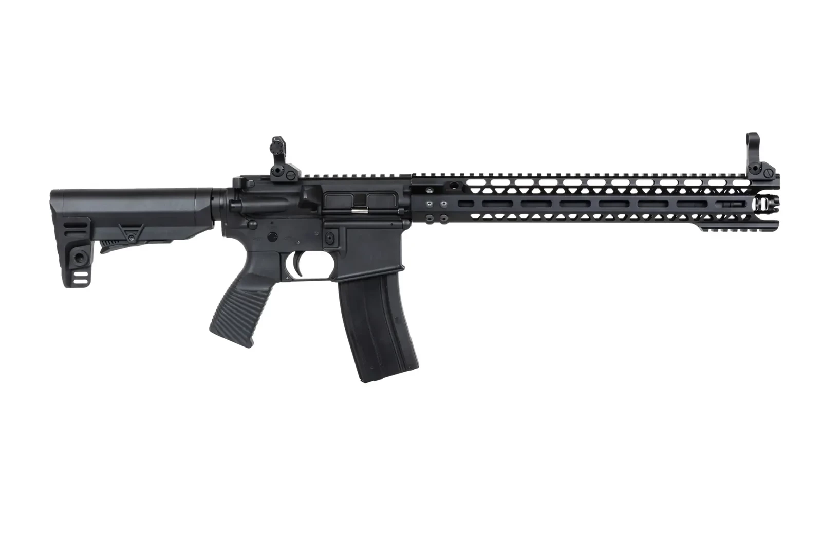 metalu wykonane zostały: 15-calowe łoże M-LOK (z montażem QD), przyrządy celownicze, magazynek, tłumik płomienia, piny, szyny RIS na łożu. Z polimeru wykonano korpus z szyną RIS, ergonomiczny chwyt pistoletowy, regulowaną kolbę.