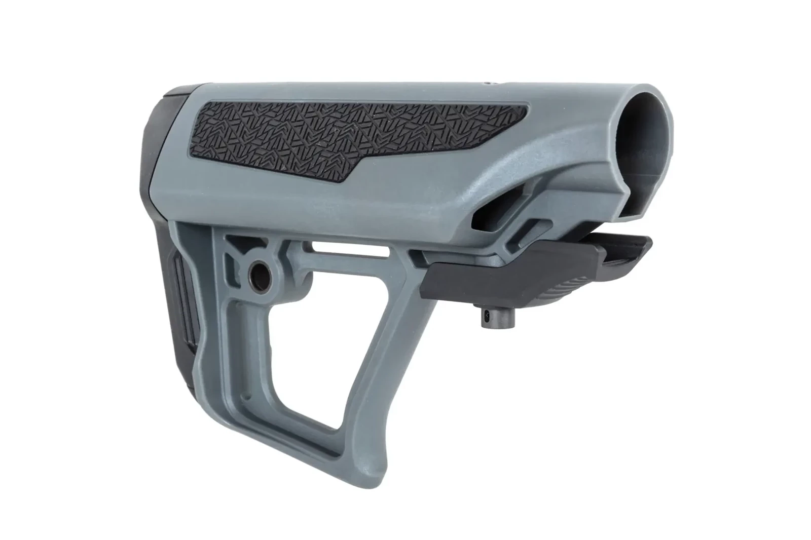 Kolba ICS Zeta została wykonana z trwałego nylonu, łączy ergonomię oraz dużą pojemność. Posiada przestronną komorę na akumulatory 3-moedułowe oraz łatwy system wymiany baterii bez konieczności zdejmowania kolby. Gumowe panele pod policzek oraz stopka kolby zapewniają komfort i wygodę, obustronne gniazda QD umożliwiają montaż pasa zarówno z prawej jak i z lewej strony.
