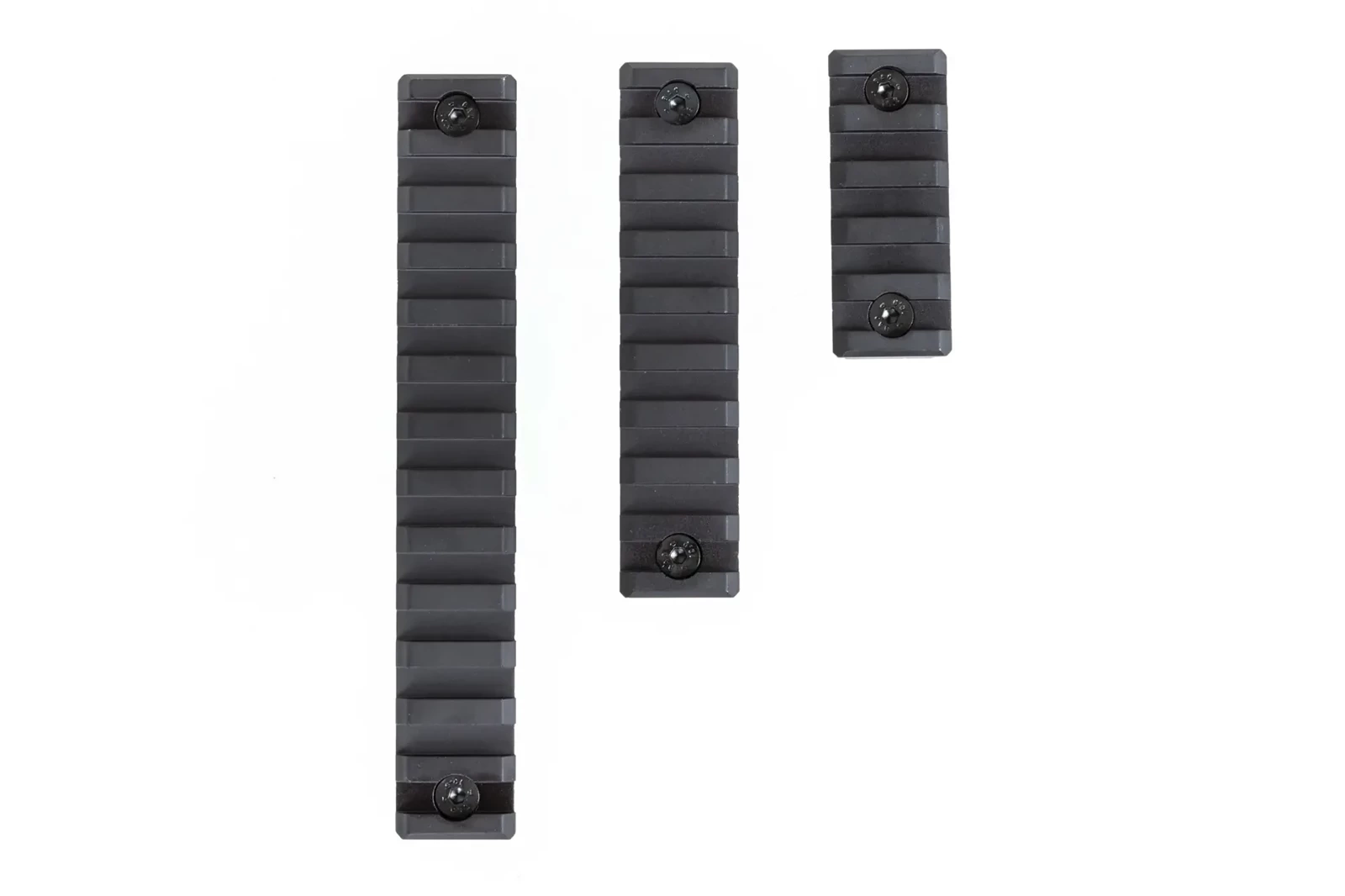 Zestaw 3 szyn kompatybilnych z szynami M-LOK, zostały wykonane z wytrzymałego aluminium. Szyny posiadają długość: