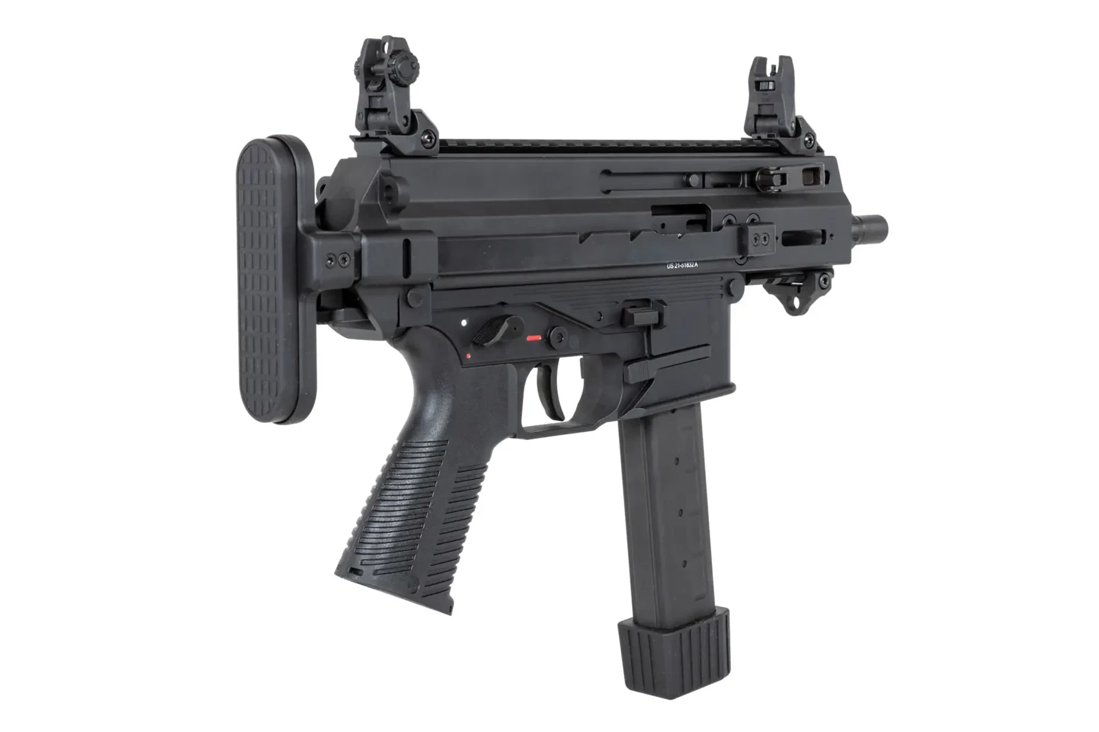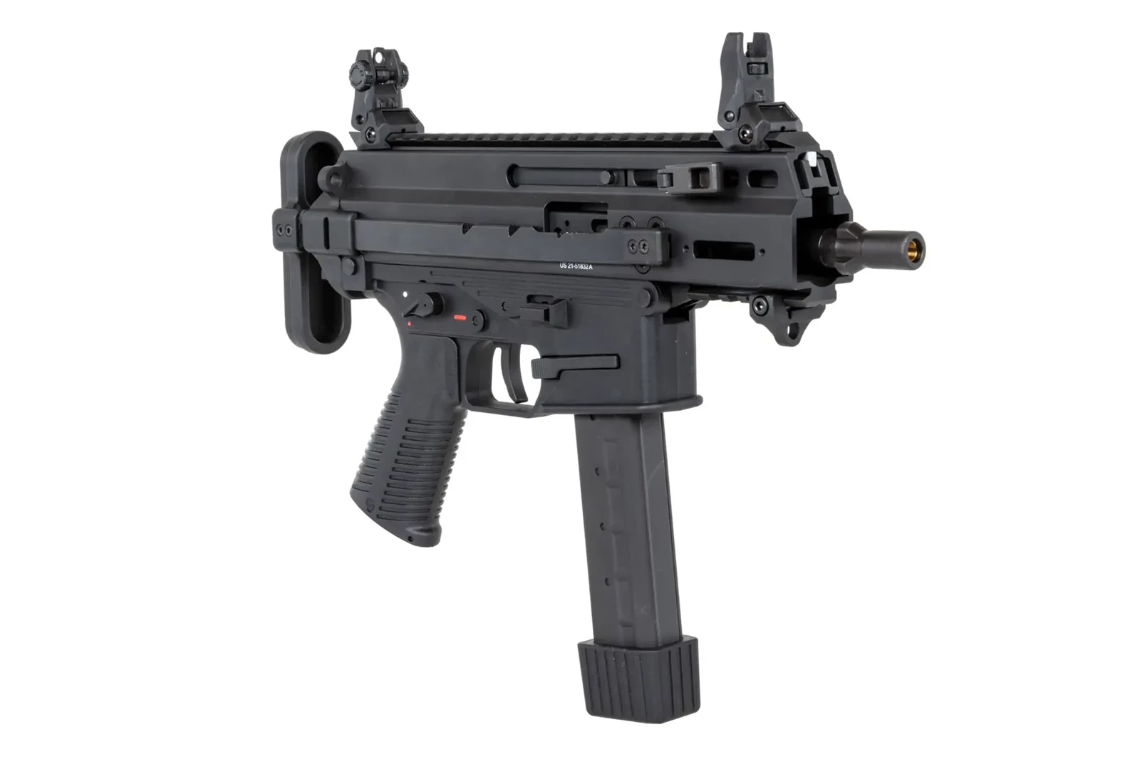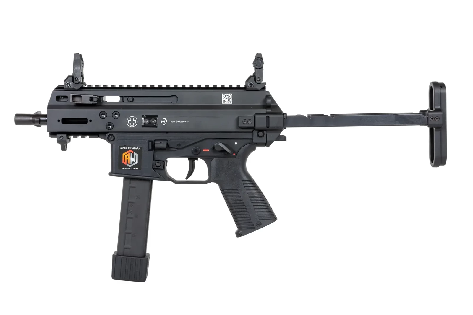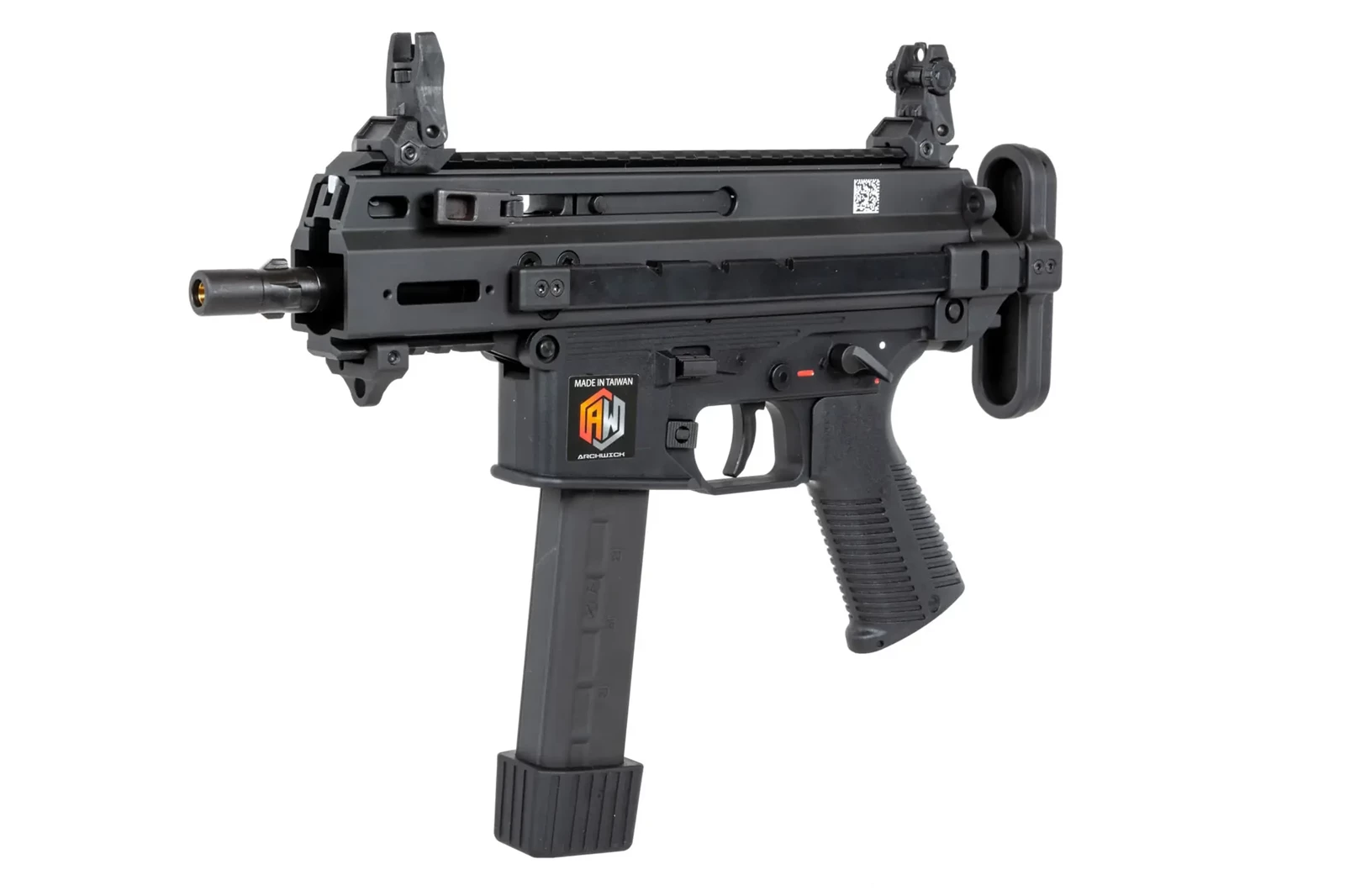 Pistolet maszynowy ASG zasilany green gasem stworzony przy współpracy z B&T Air oraz Archwick. Model jest przystosowany zarówno dla użytkowników prawo jak i leworęcznych - obustronne w replice są zarówno manipulatory - blokada magazynka, selektor ognia jak i rączka przeładowania  i zrzut zamka. Model został wyposażony w szyny RIS (grzbietowa oraz dolna) - umożliwią mocowanie np. optyki lub chwytu przedniego. Jednocześnie po bokach korpusu znajdują się mocowania kompatybilne z systemem M-LOK. Z tworzywa wykonano dolny korpus wraz z chwytem pistoletowym,