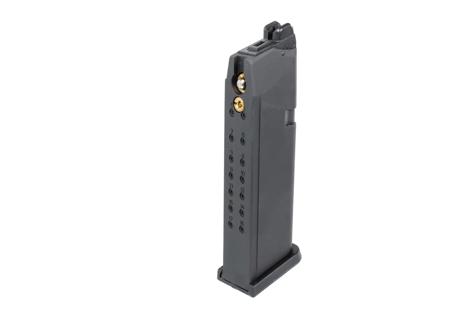Magazynek o pojemności 23 kulek zasilany green gasem do replik TP22 oraz pistoletów serii G. Współpracuje ze zwalniaczami magazynka zarówno w przypadku lewo jak i praworęcznej wersji.