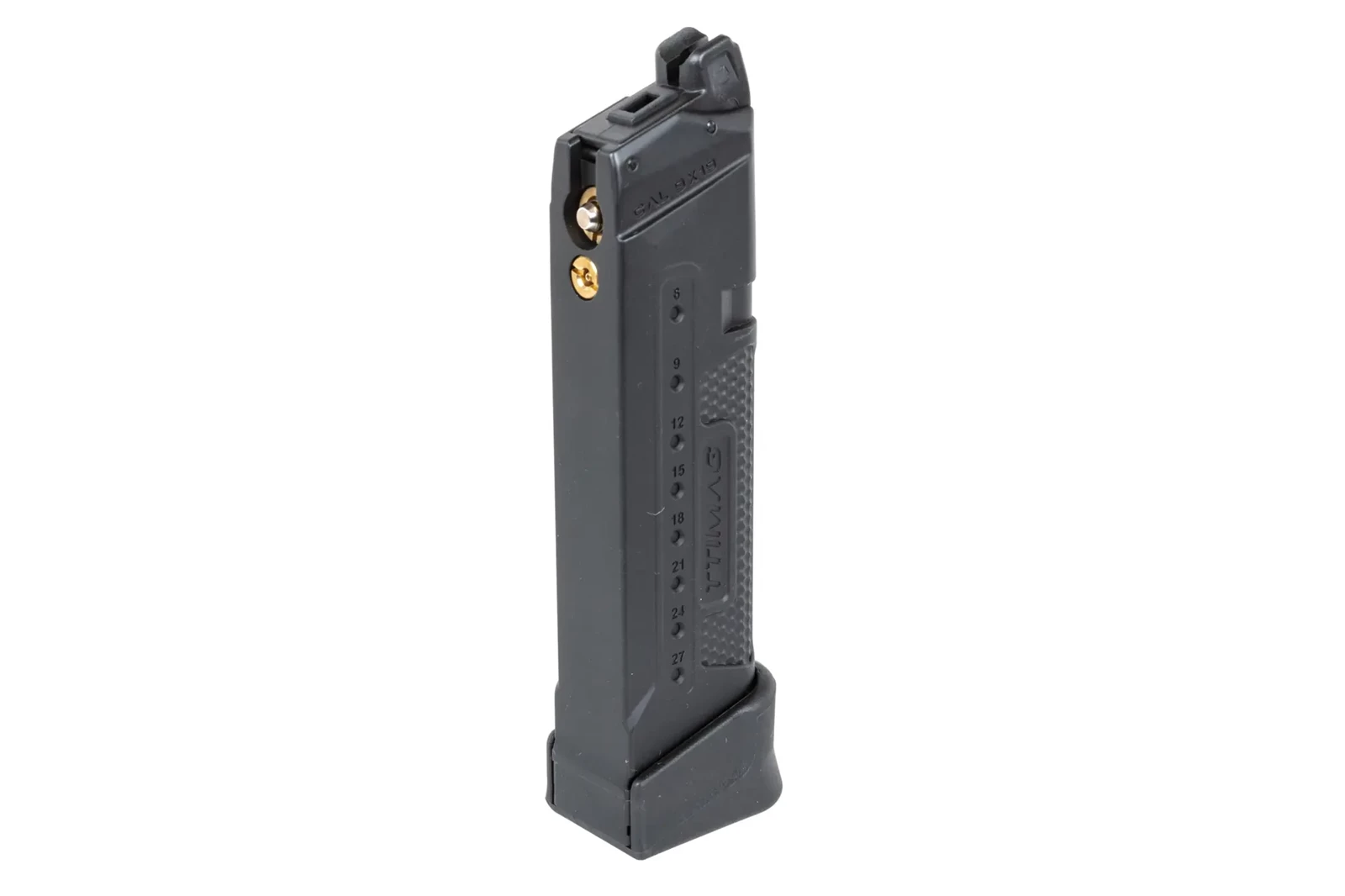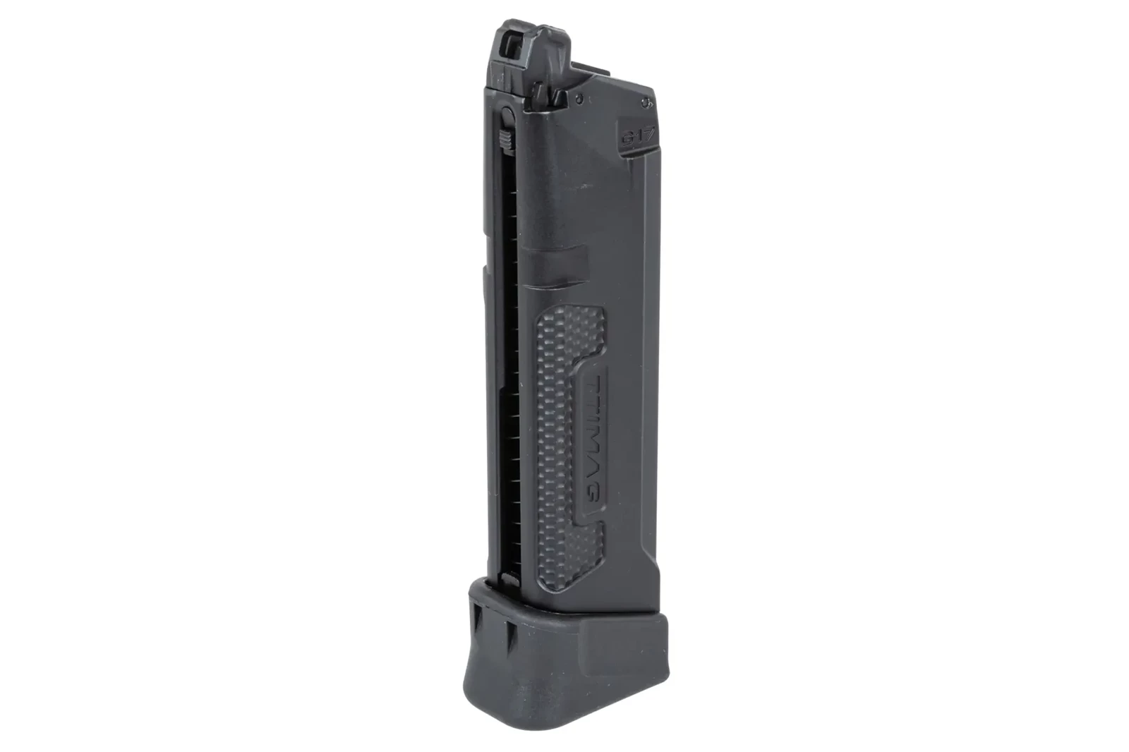 Magazynek zasilany jest green gasem, pomieści 28 kulek. Model posiada powiększoną stopkę oraz chropowate boki - ułatwi to manipulowaniem podczas rozgrywek airsoftowych.