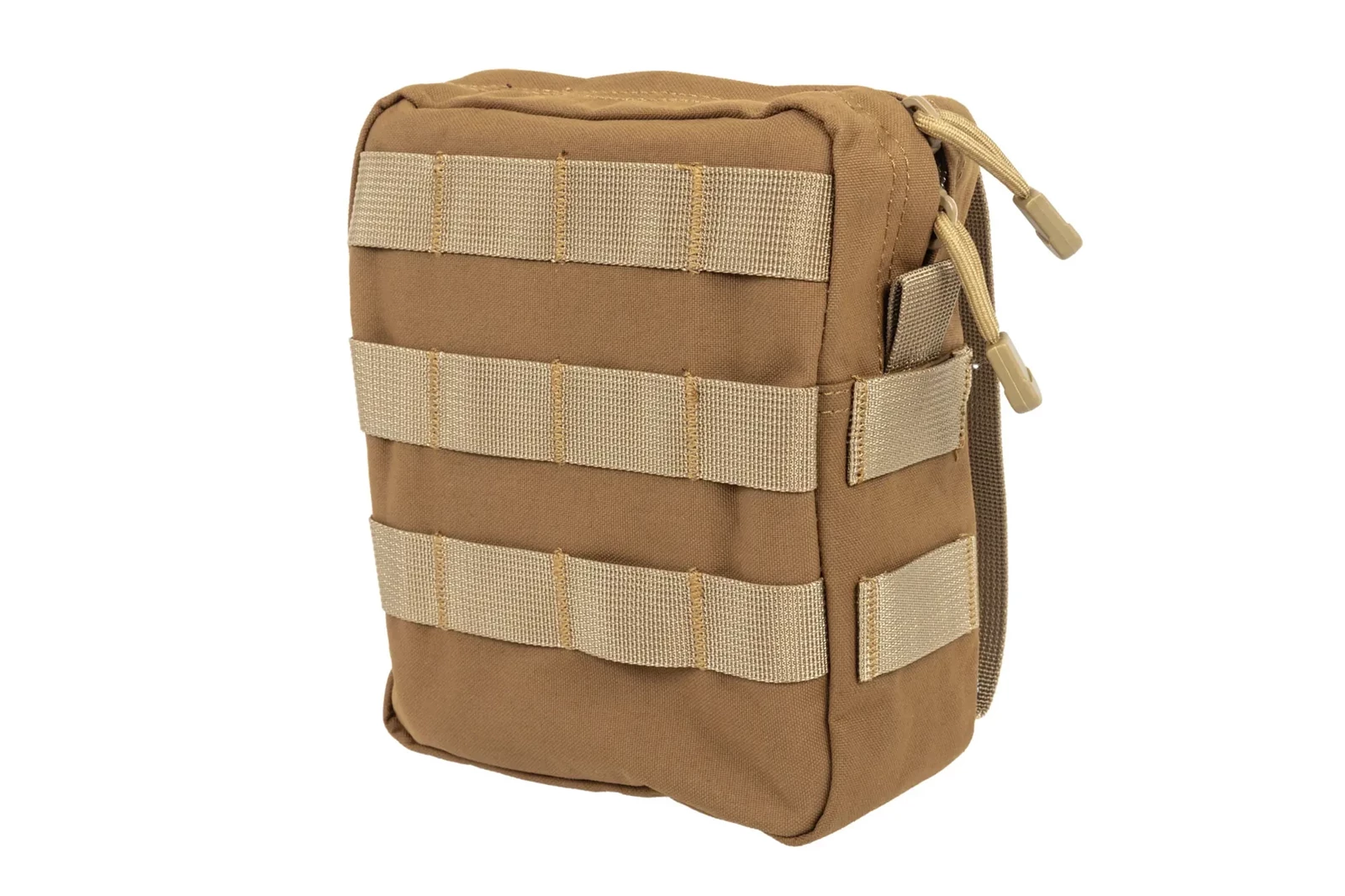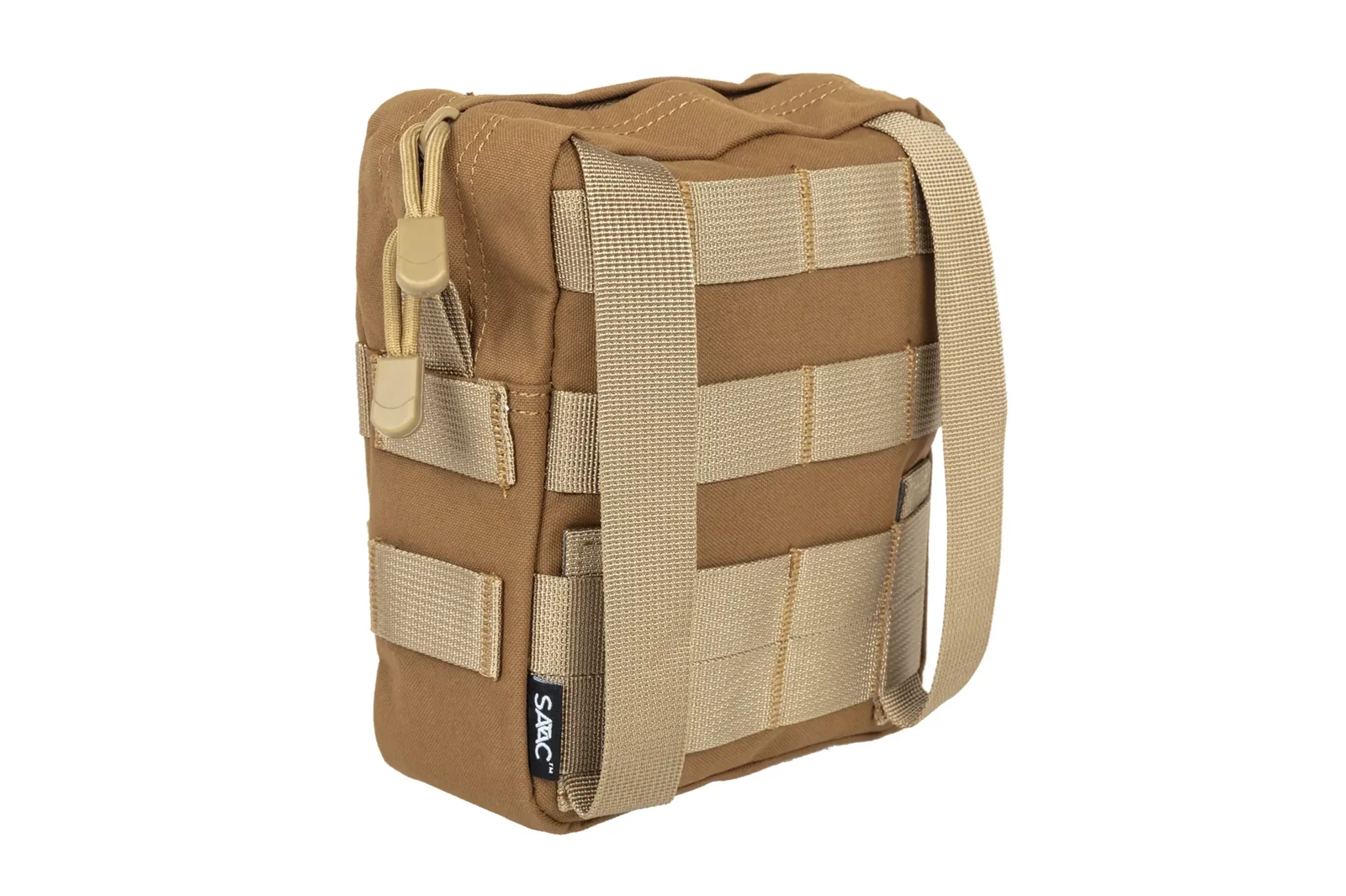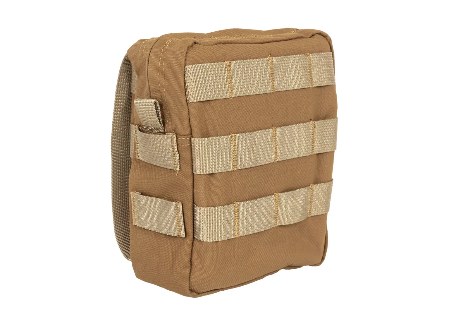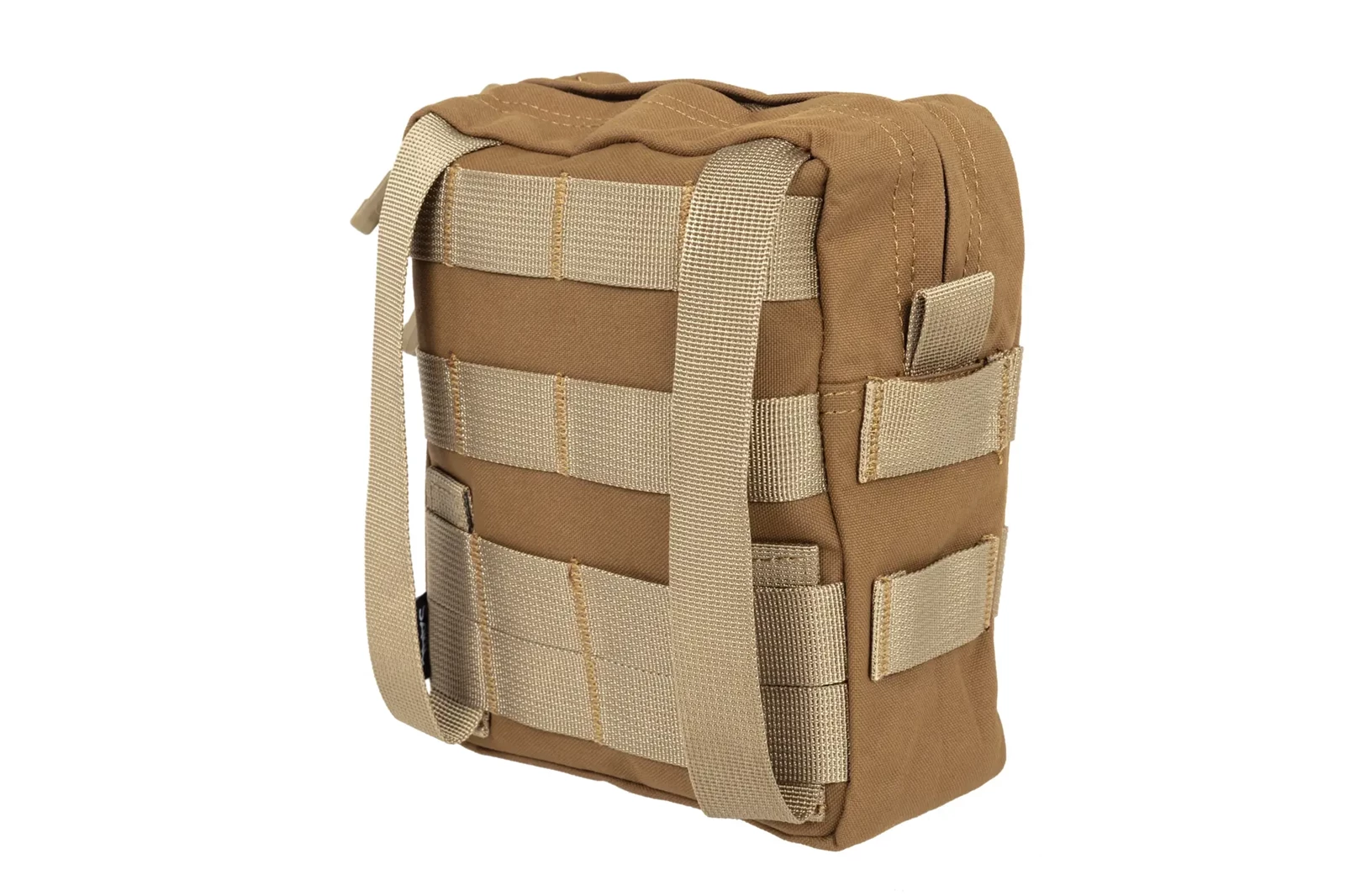 Duża kieszeń typu cargo z montażem MOLLE, wyposażona w przegrodę na rzep i pionowe gumy do organizacji zawartości. Posiada otwór drenażowy do odprowadzania wody oraz dwubiegowy zamek błyskawiczny.