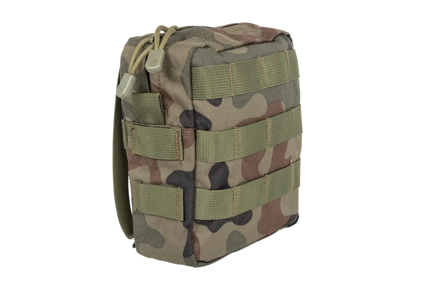 Duża kieszeń typu cargo z montażem MOLLE, wyposażona w przegrodę na rzep i pionowe gumy do organizacji zawartości. Posiada otwór drenażowy do odprowadzania wody oraz dwubiegowy zamek błyskawiczny.