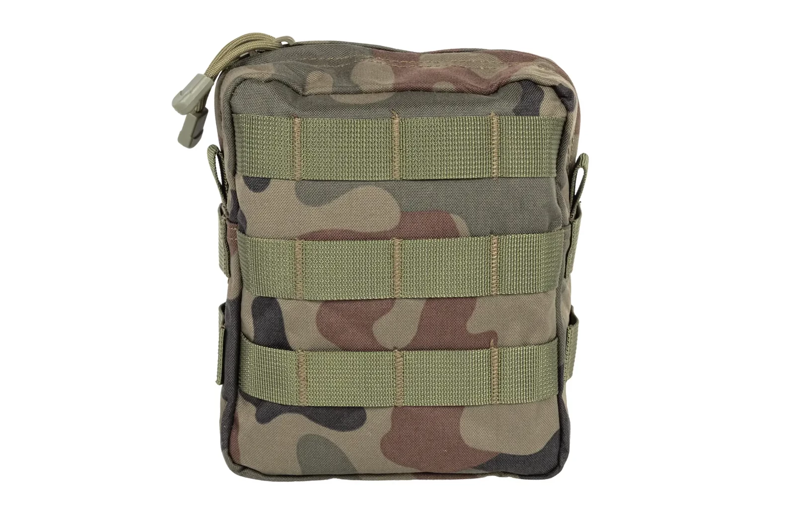 Wewnętrzna podgumowana warstwa zapewnia wodoodporność, a przednia ściana pokryta taśmami MOLLE umożliwia mocowanie dodatkowego sprzętu.