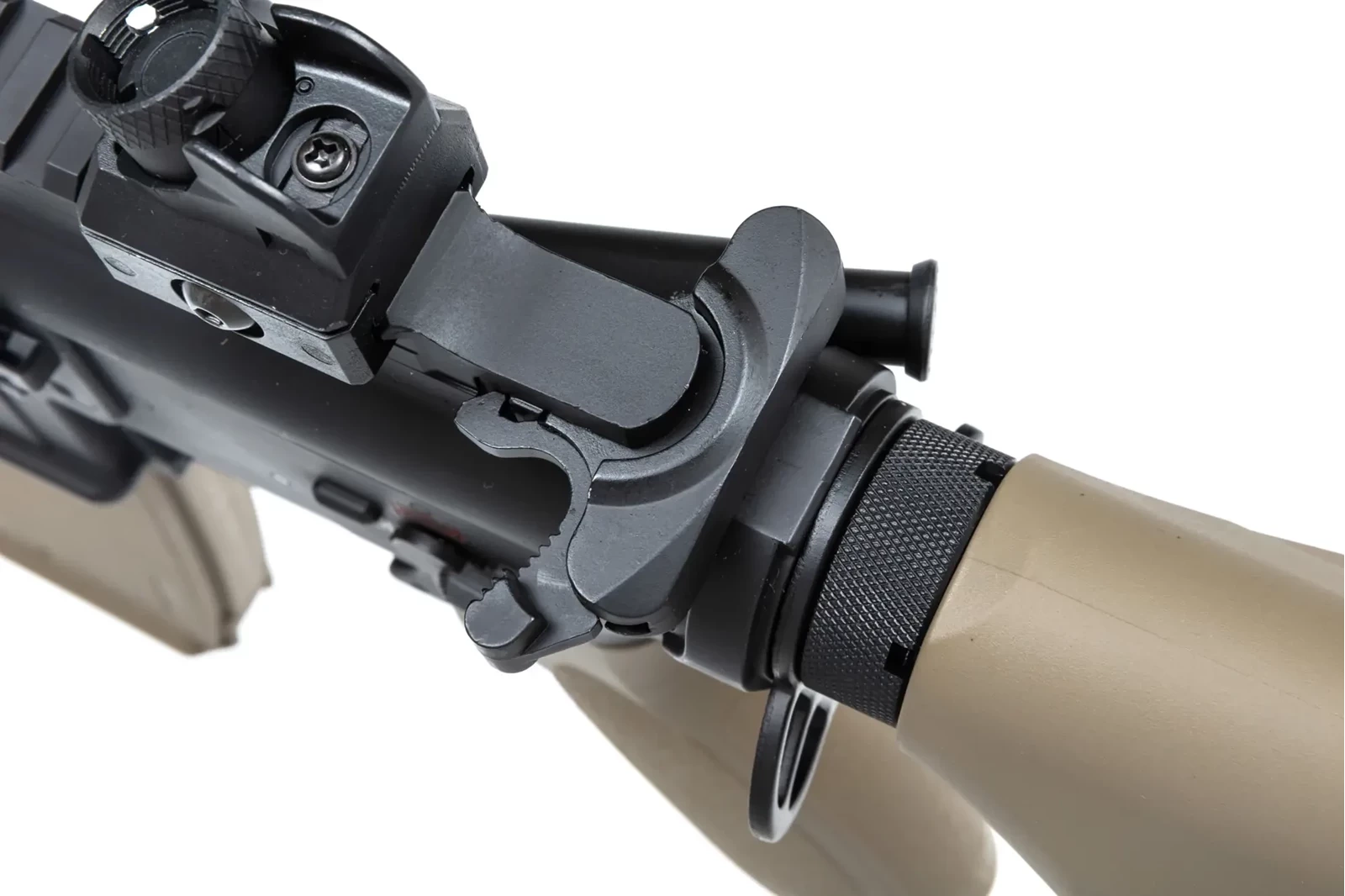 - system szybkiej wymiany sprężyny ESA2™ - pozwala on na szybkie i sprawne dostosowanie mocy repliki do warunków spodziewanych na polu rozgrywki bez konieczności użycia narzędzi (objęty jest Europejskim Patentem o numerze: 007422159-0001)