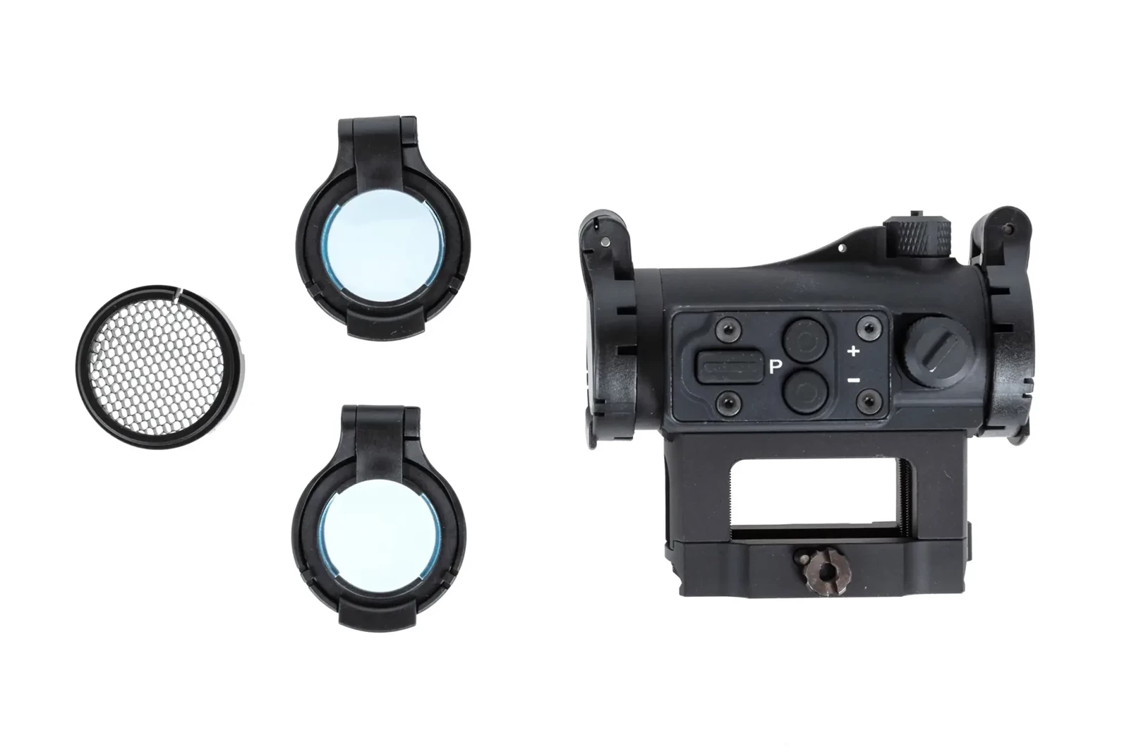 Kolimator ZV-1 od JJ Airsoft to lekki, wytrzymały kolimator, do którego dołączono mocowanie QD - wysokie i niskie. Posiada szeroki wachlarz zalet - duża ilość poziomów podświetlenia w tym również dla urządzeń noktowizyjnych. W opakowaniu, oprócz kolimatora, znajdziemy również klucz imbusowy, ściereczkę do czyszczenia szkieł, dodatkowe śruby do montażu niskiego oraz osłonki na soczewki, gdy osłony transportowe są podniesione.