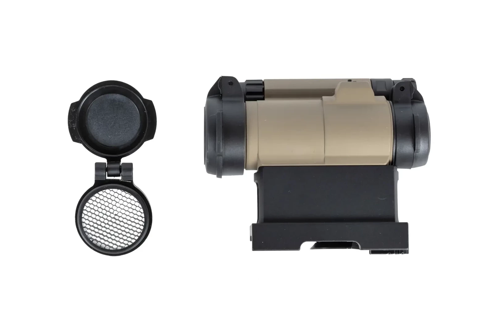 Kolimator wykonany z metalu, w zestawie dołączono montaż QD, który umożliwi mocowanie na replice bez konieczności posiadania dodatkowych narzędzi. Kolimator posiada dwie osłony typu flip-up dla ochrony szkieł.