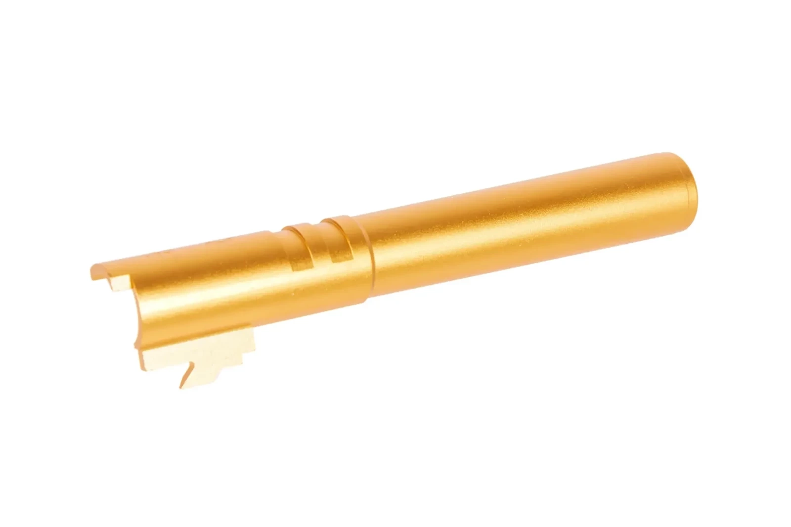 Wykonana z aluminium, lufa zewnętrzna do replik gazowych TM Hi-Capa 5.1 Lufa została wyposażona w wewnętrzny gwint 11mm CW, umożliwiając montaż tracera lub tłumika dźwięku. Posiada oznaczenia .45 ACP