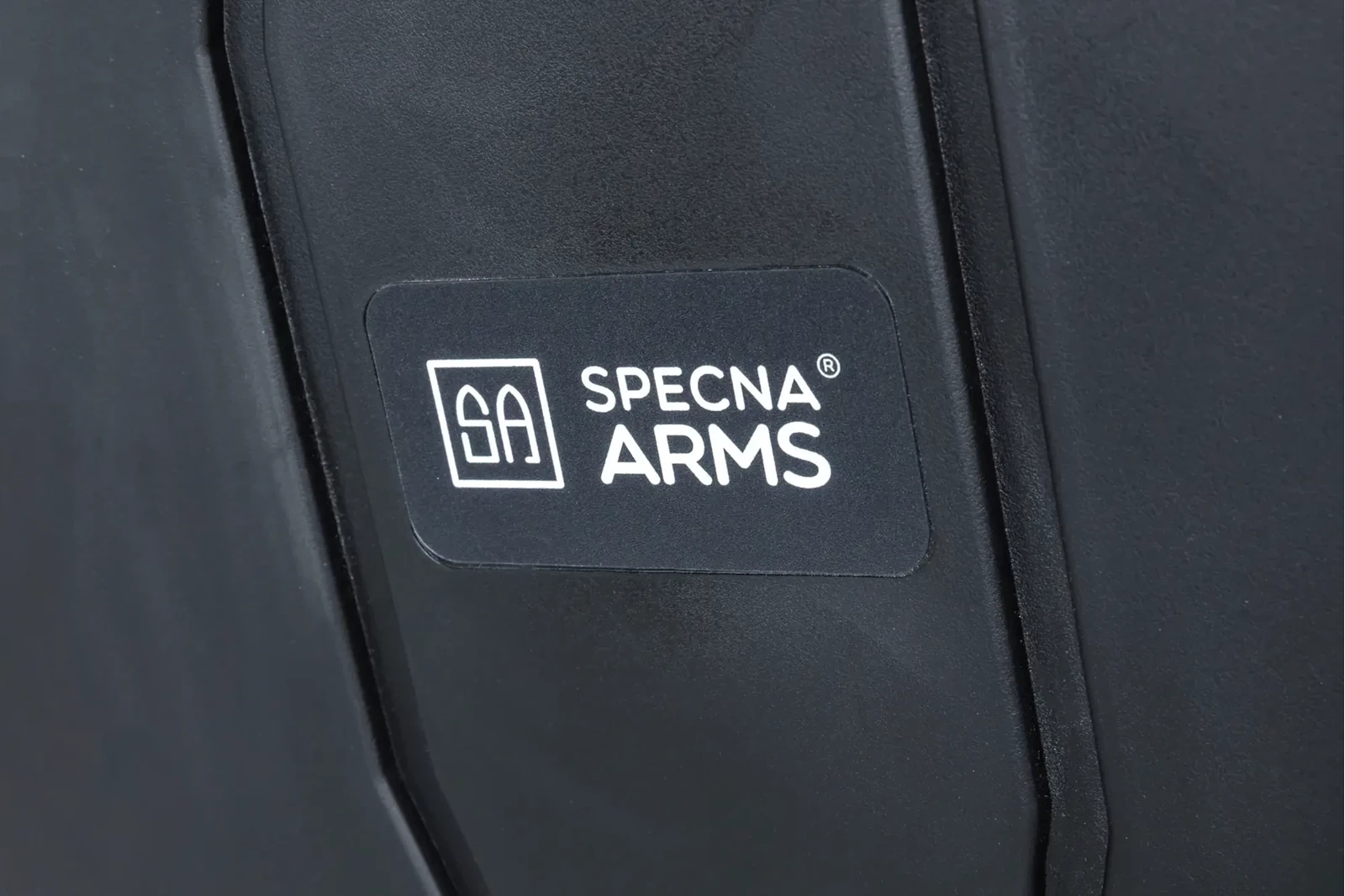 Wewnątrz znajdziemy gumowe uszczelki, które będą chronić przed zapyleniem lub wilgocią (IP67).  Skrzynia posiada żebrowania, które umożliwią piętrowanie większej ilości modeli. Na klapie znajduje się eleganckie logo Specna Arms.