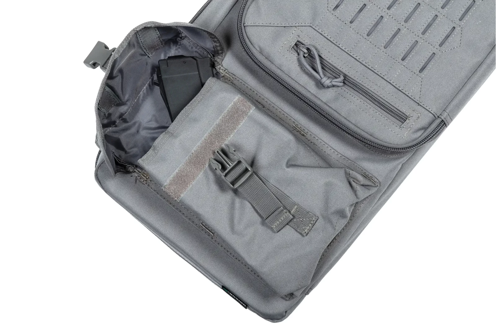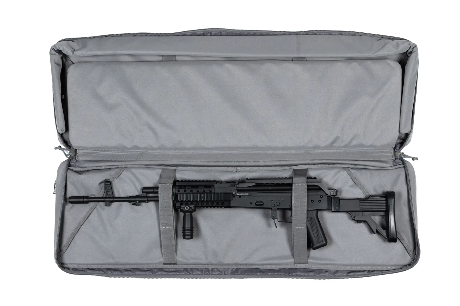 Pokrowiec posiada obszerną główną komorę podzieloną na dwie przegrody. Każda z przegród może pomieścić replikę o długości max. 101 cm. Repliki wewnątrz są zabezpieczone przy pomocy pasów zapinanych na rzep oraz miękkiego wkładu, który odgrodzi od siebie transportowane wyposażenie. Front pokrowca posiada 5 kieszeni: