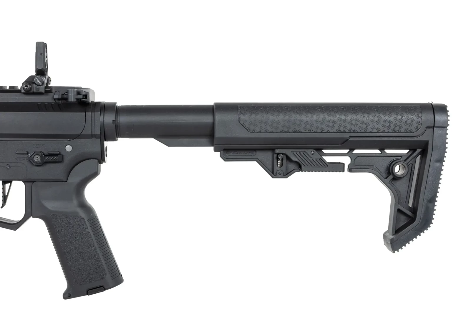 Replika została wyposażona w minimalistyczną kolbę Light Ops Stock. Kolba rozsuwana Light Ops posiada gumowe antypoślizgowe panele po obu stronach pełniące rolę baki policzkowej oraz charakterystyczną zakrzywioną gumową stopkę kolby, która wygodnie osiada na ramieniu.