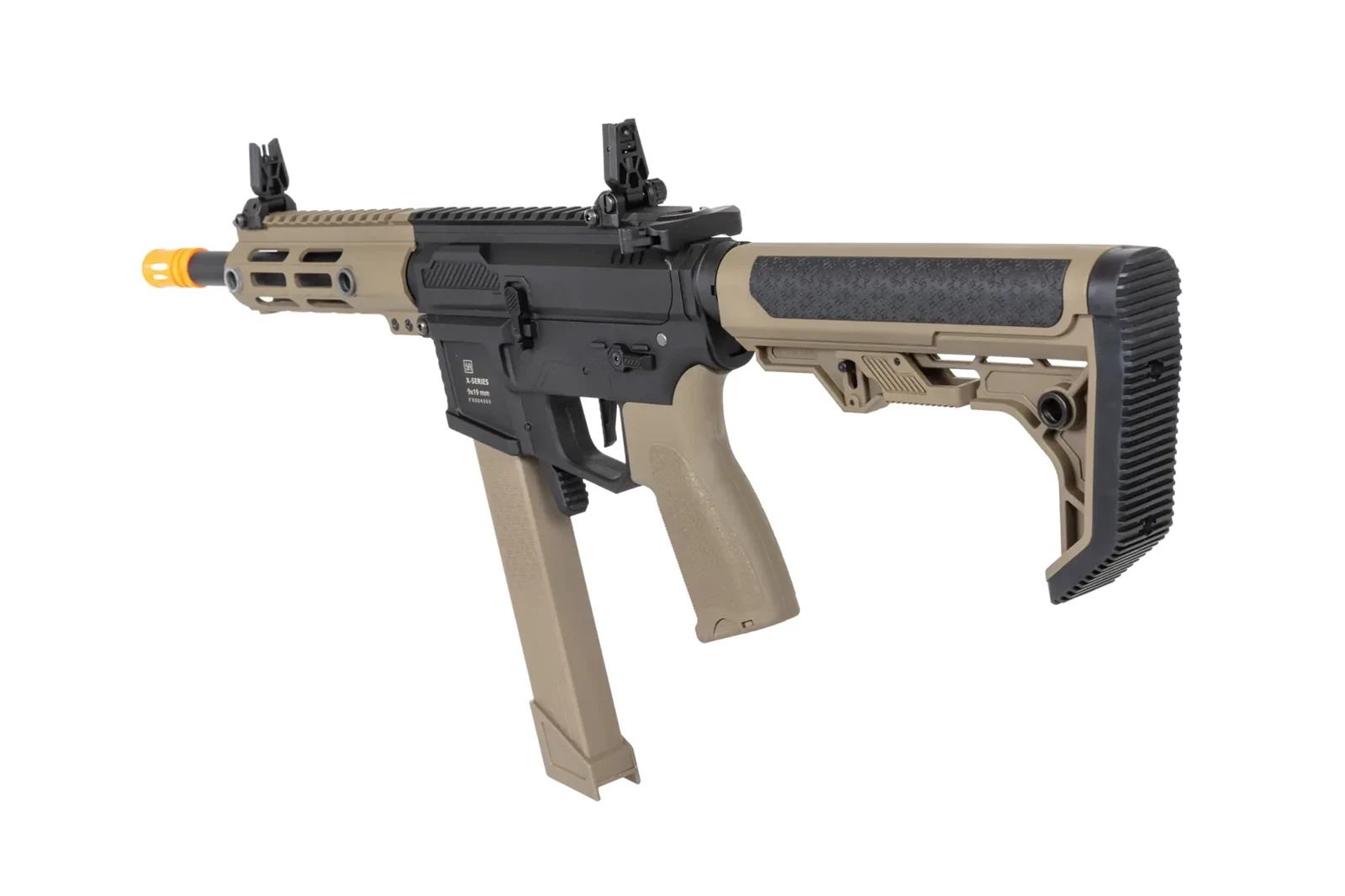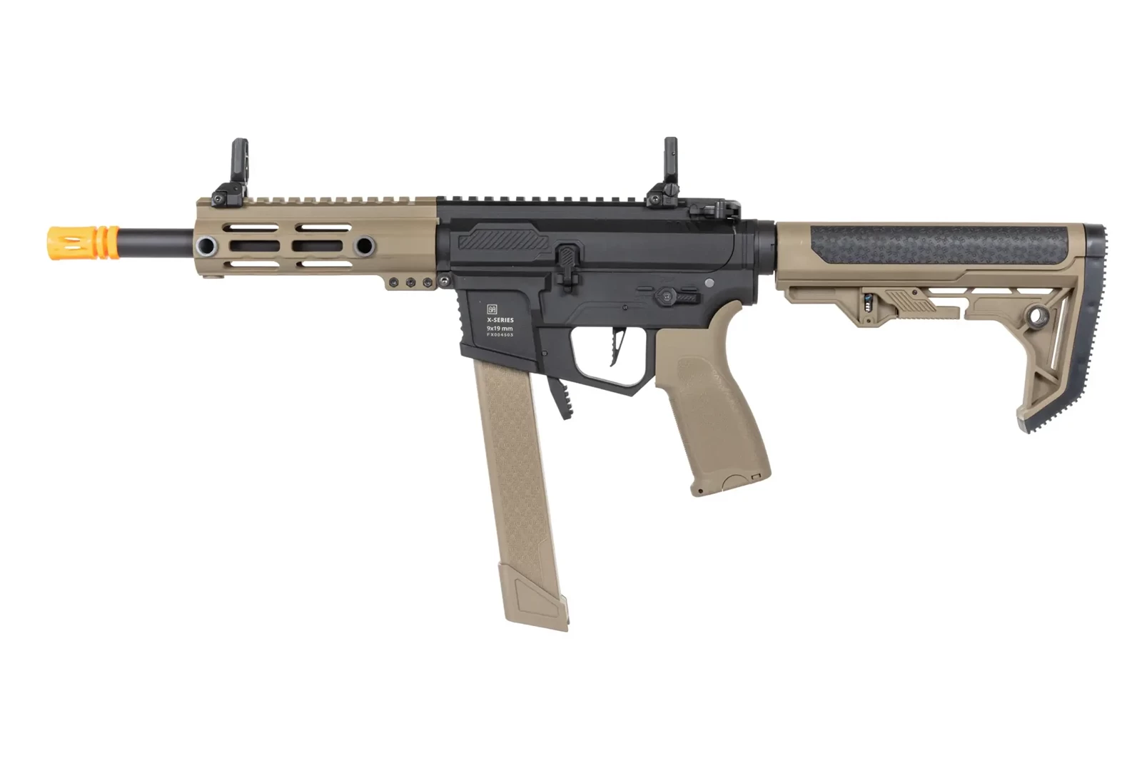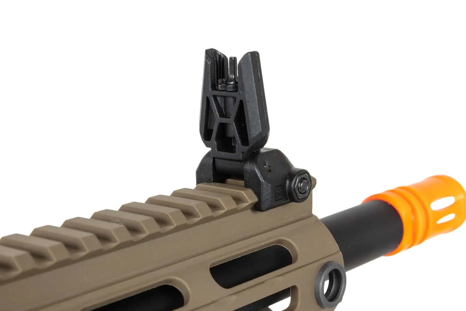 Pistolet maszynowy ASG Specna Arms SA-FX01 FLEX™ HAL ETU Half-Tan z pomarańczowym urządzeniem wylotowym