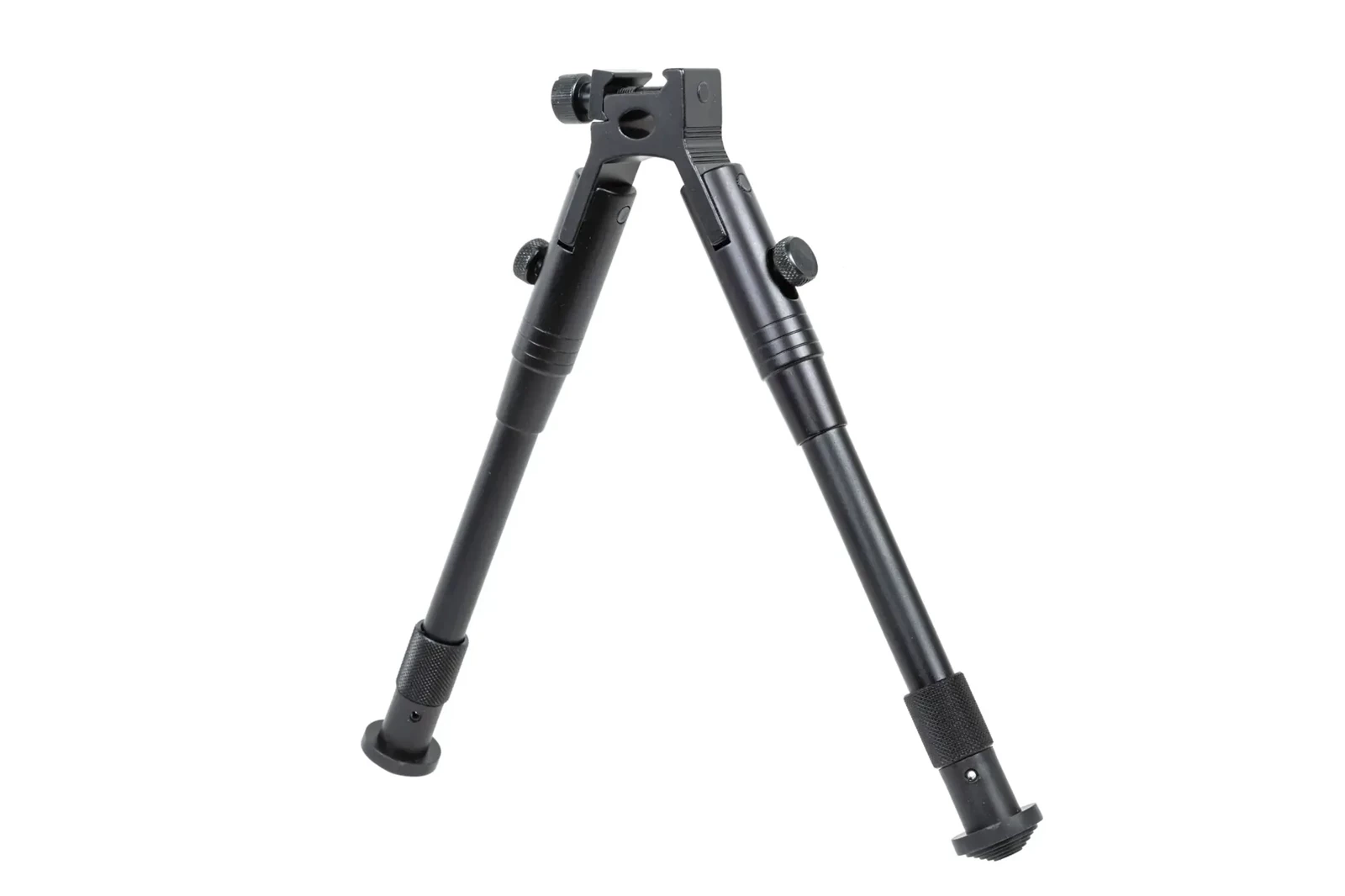 Dwójnóg wykonany z aluminium, z montażem na szynę RIS. Posiada gumowe stopki, które ułatwią stabilizację w nierównym terenie.
