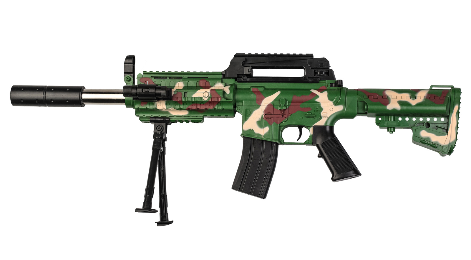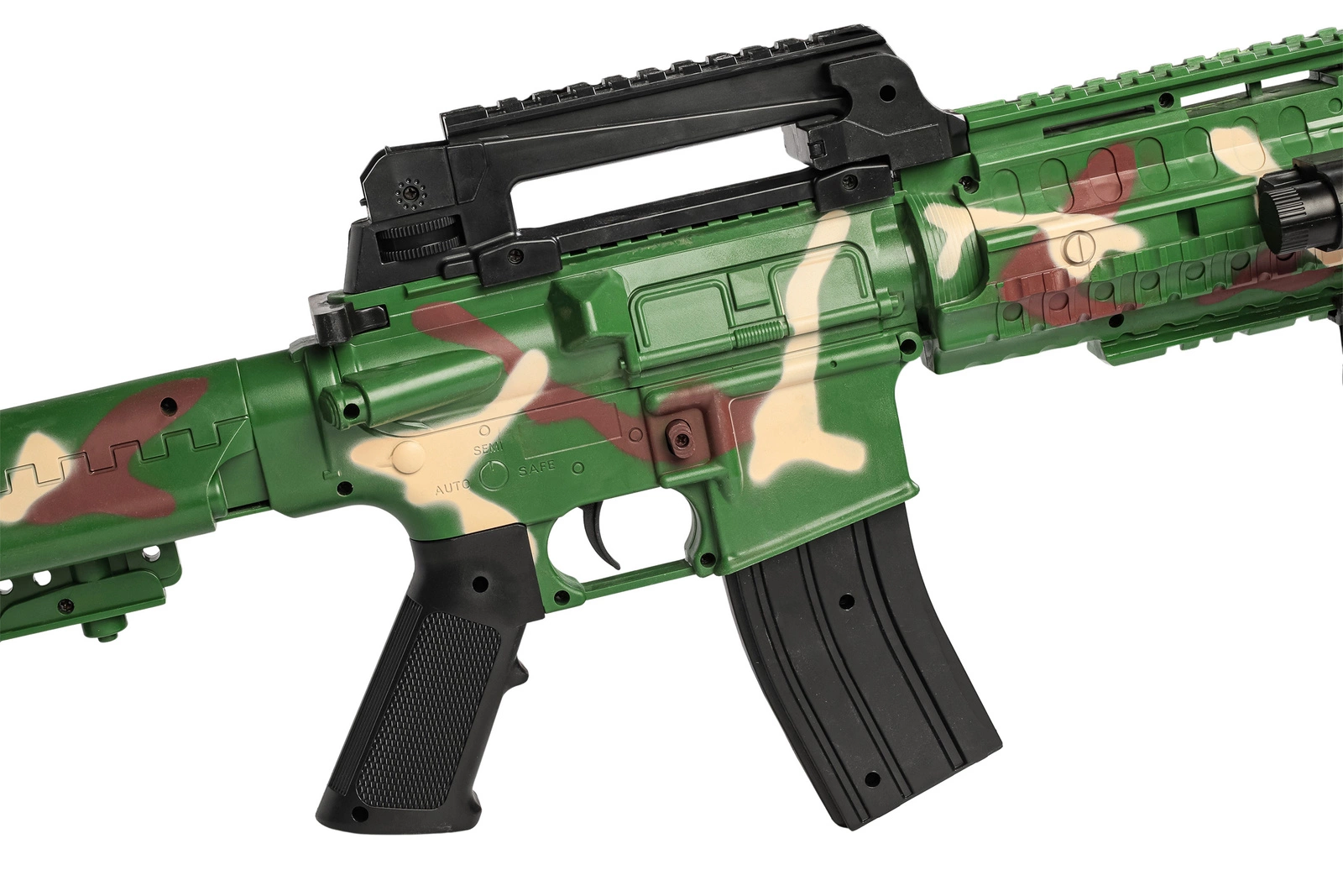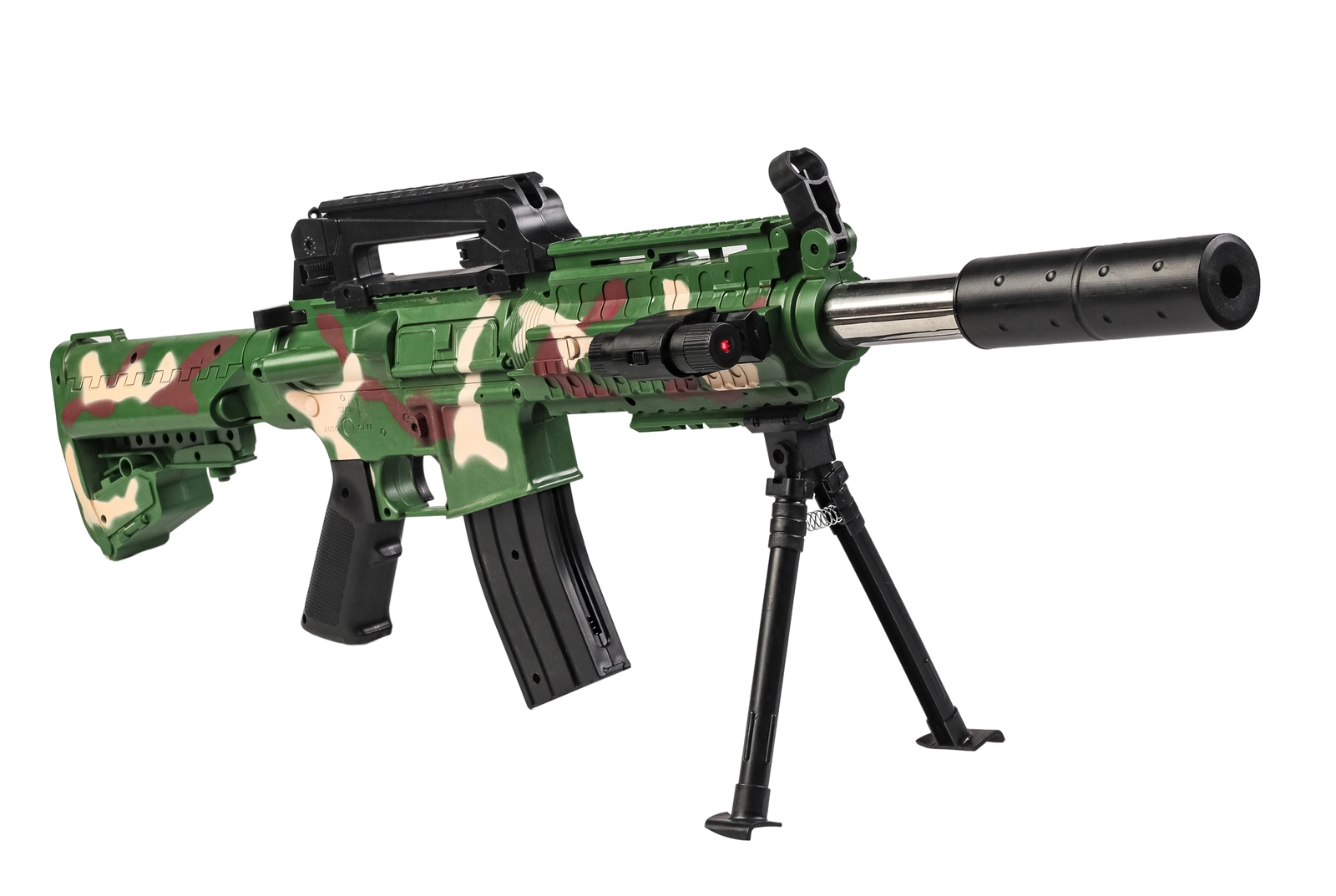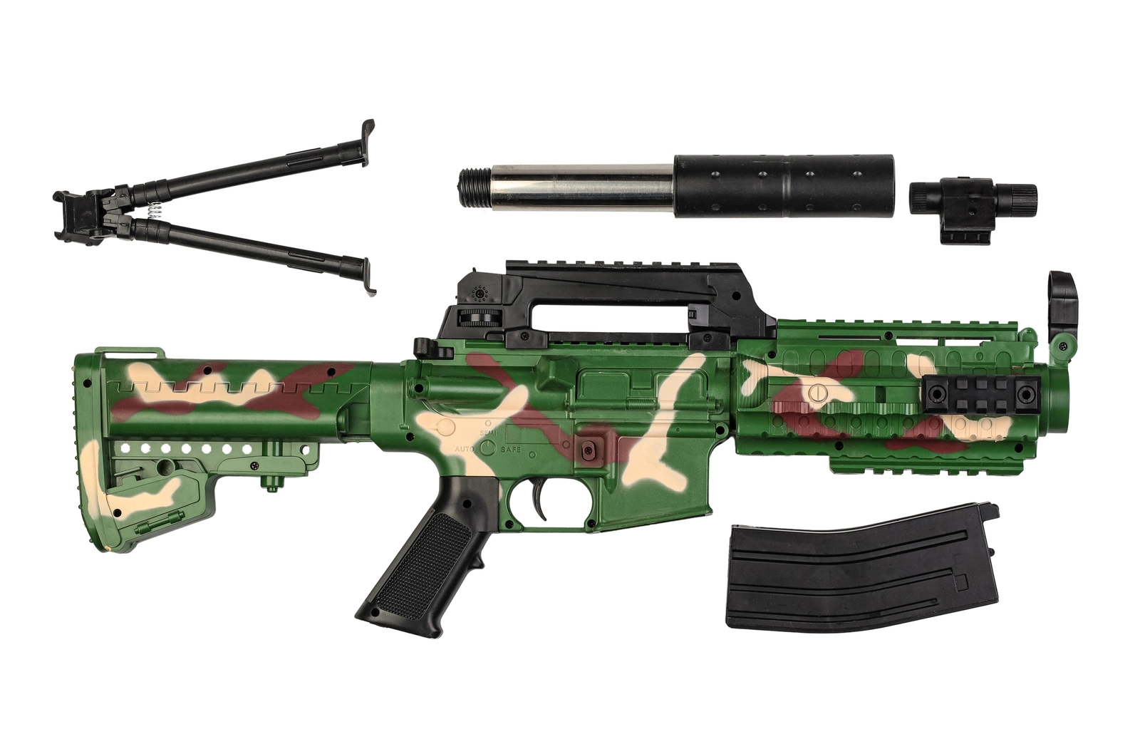 Szukasz świetnej zabawy lub chcesz doskonalić swoje umiejętności strzeleckie? Ten karabin sprężynowy na plastikowe kulki to idealny wybór! Model inspirowany karabinami szturmowymi, posiada kamuflaż wojskowy, który nadaje mu realistyczny wygląd.