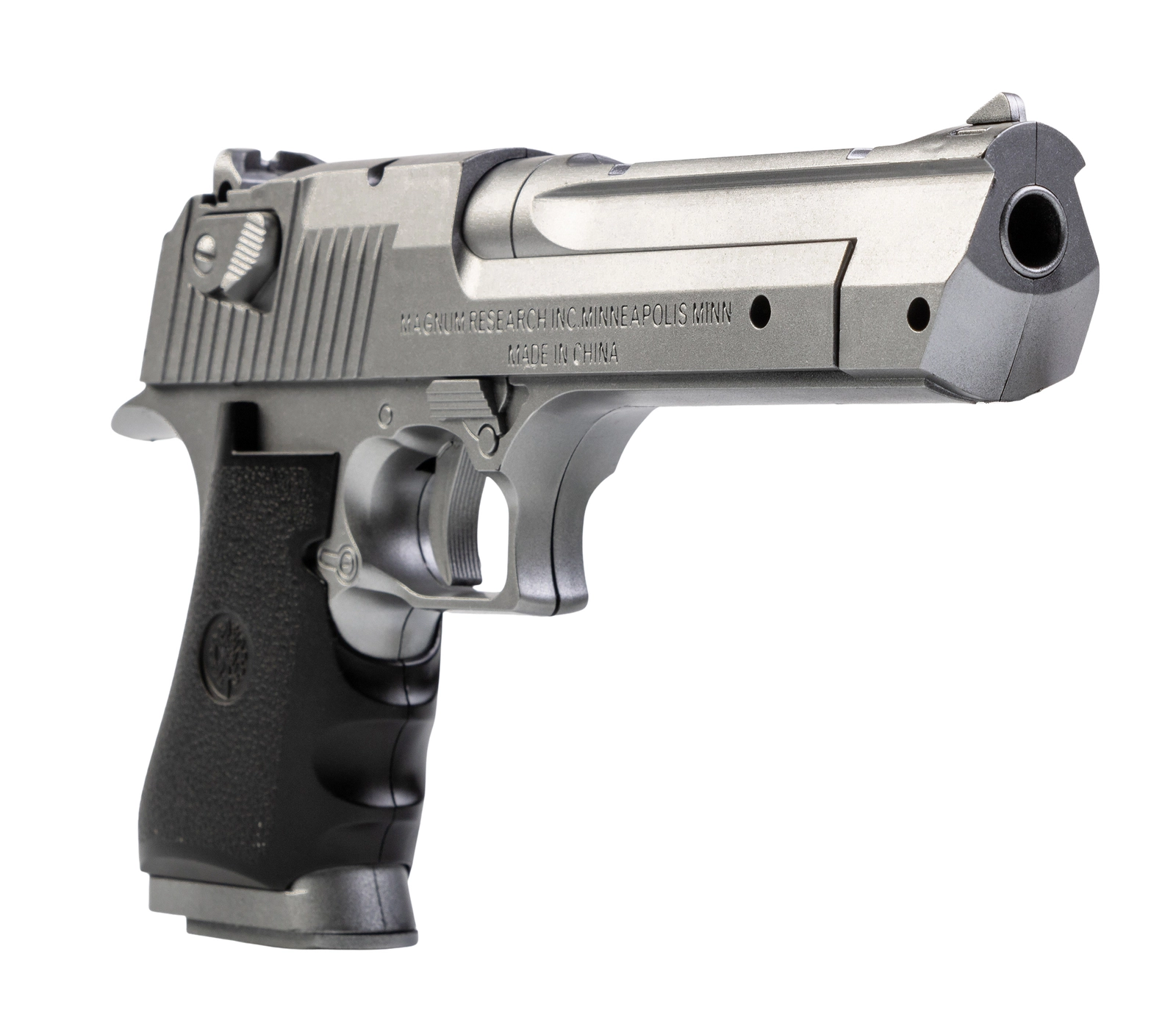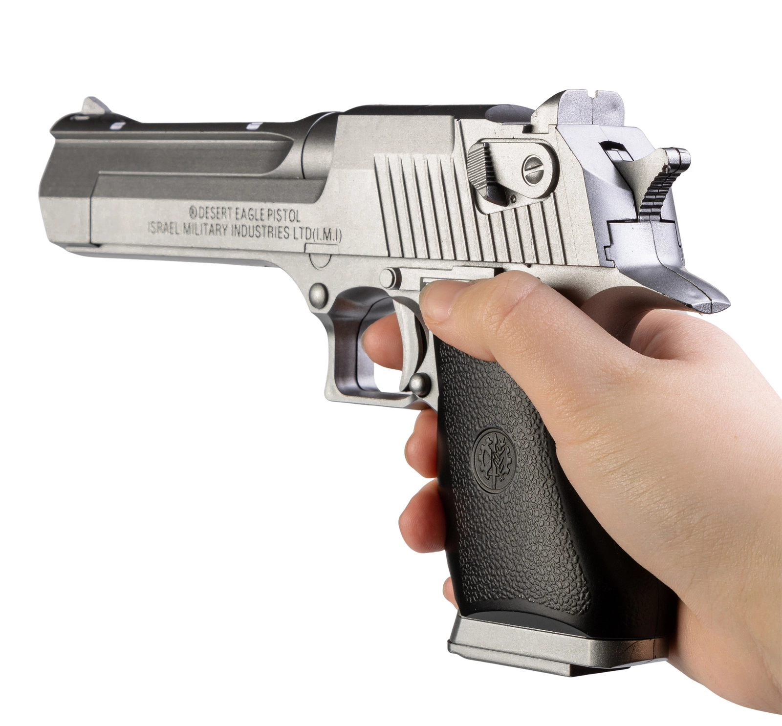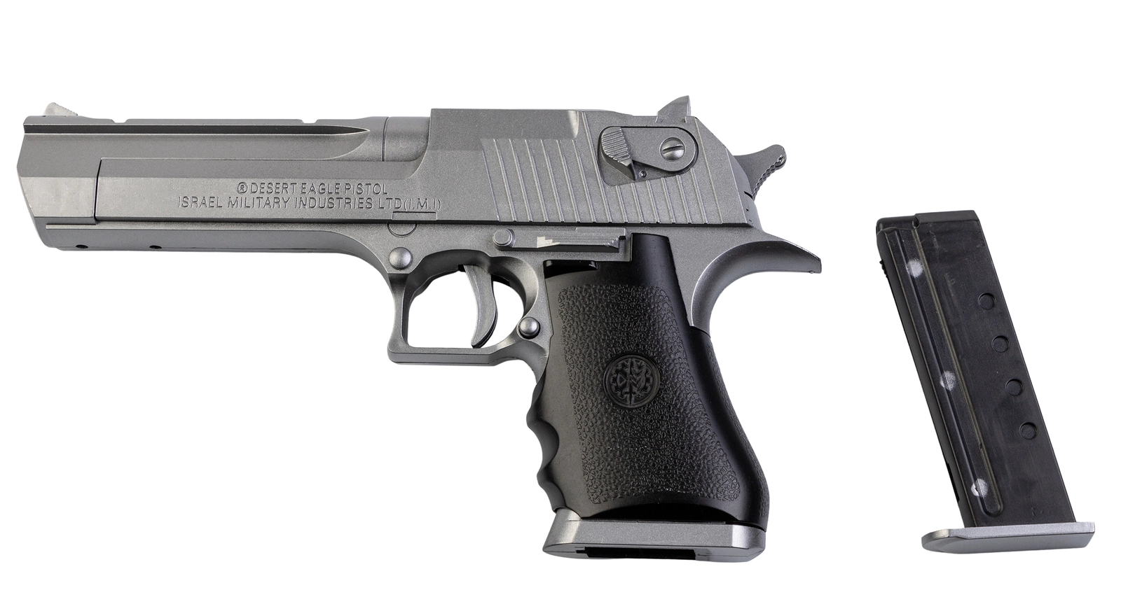 Replika pistoletu sprężynowego Desert Eagle, zaprojektowana do strzelania kulami plastikowymi o średnicy 6 mm. Pistolet wykonany jest głównie z trwałego tworzywa sztucznego, co czyni go lekkim i łatwym w obsłudze. Całość prezentuje się elegancko w kolorze czarnym.