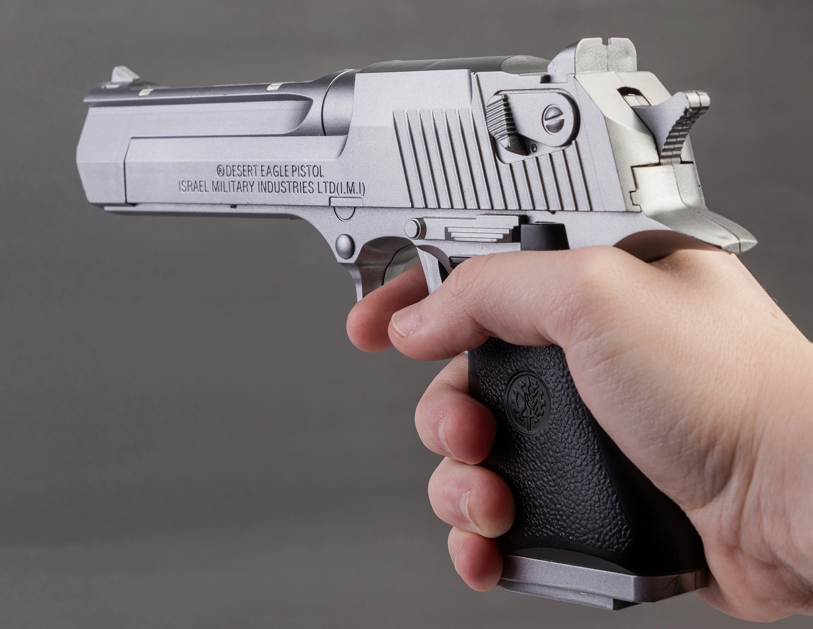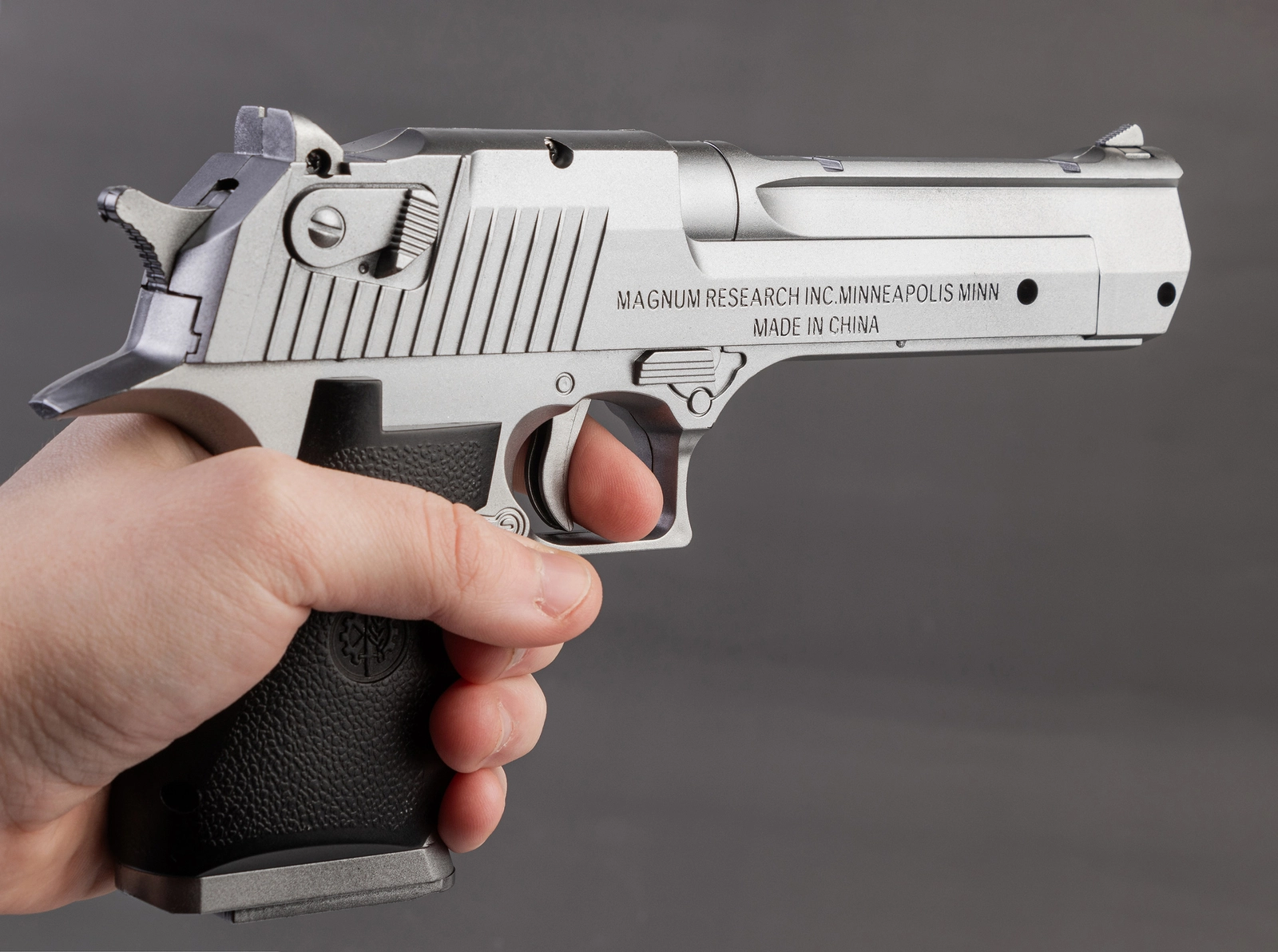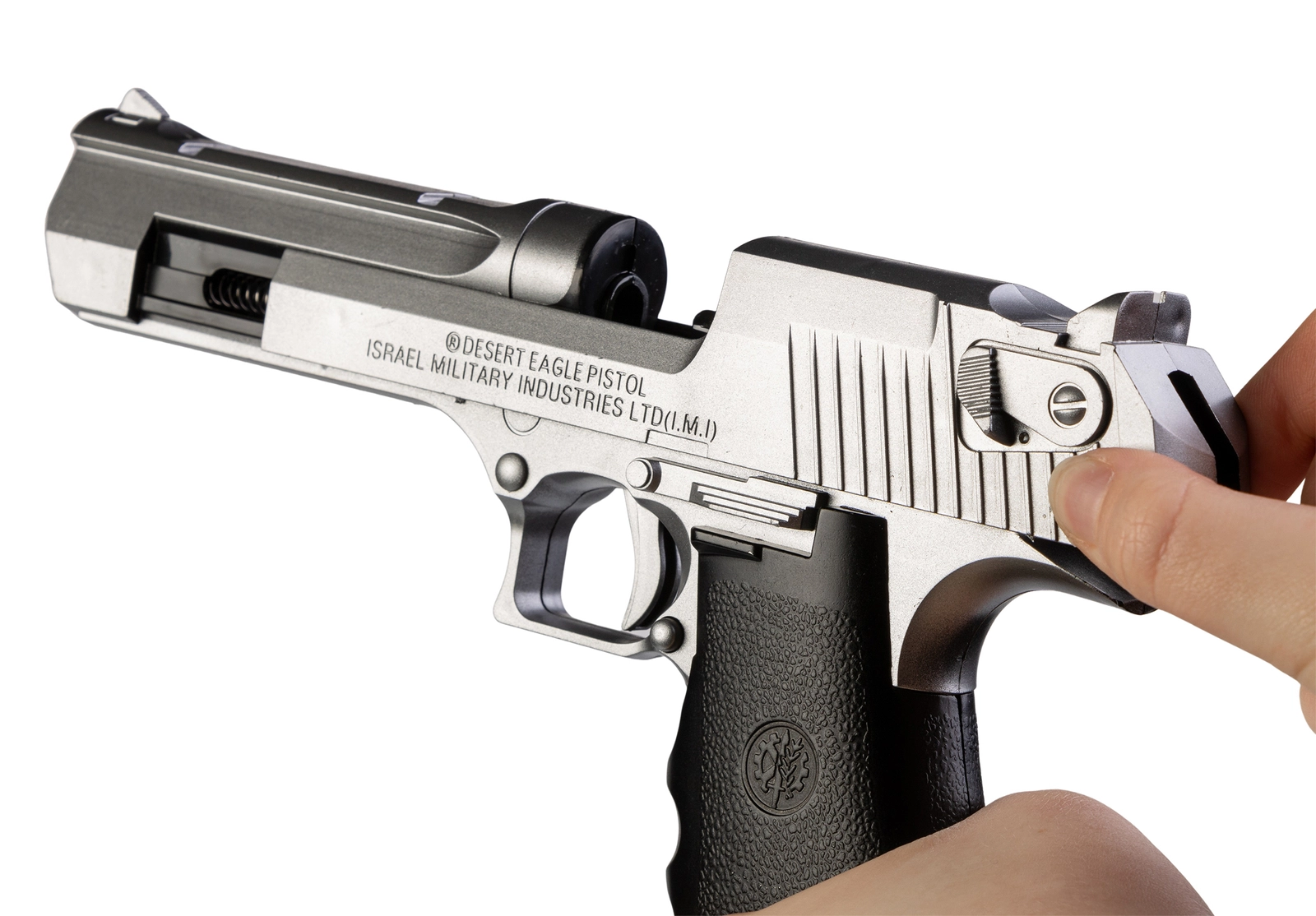 - Replika napędzana jest sprężynowo co oznacza, że przed każdym strzałem należy ją przeładować.