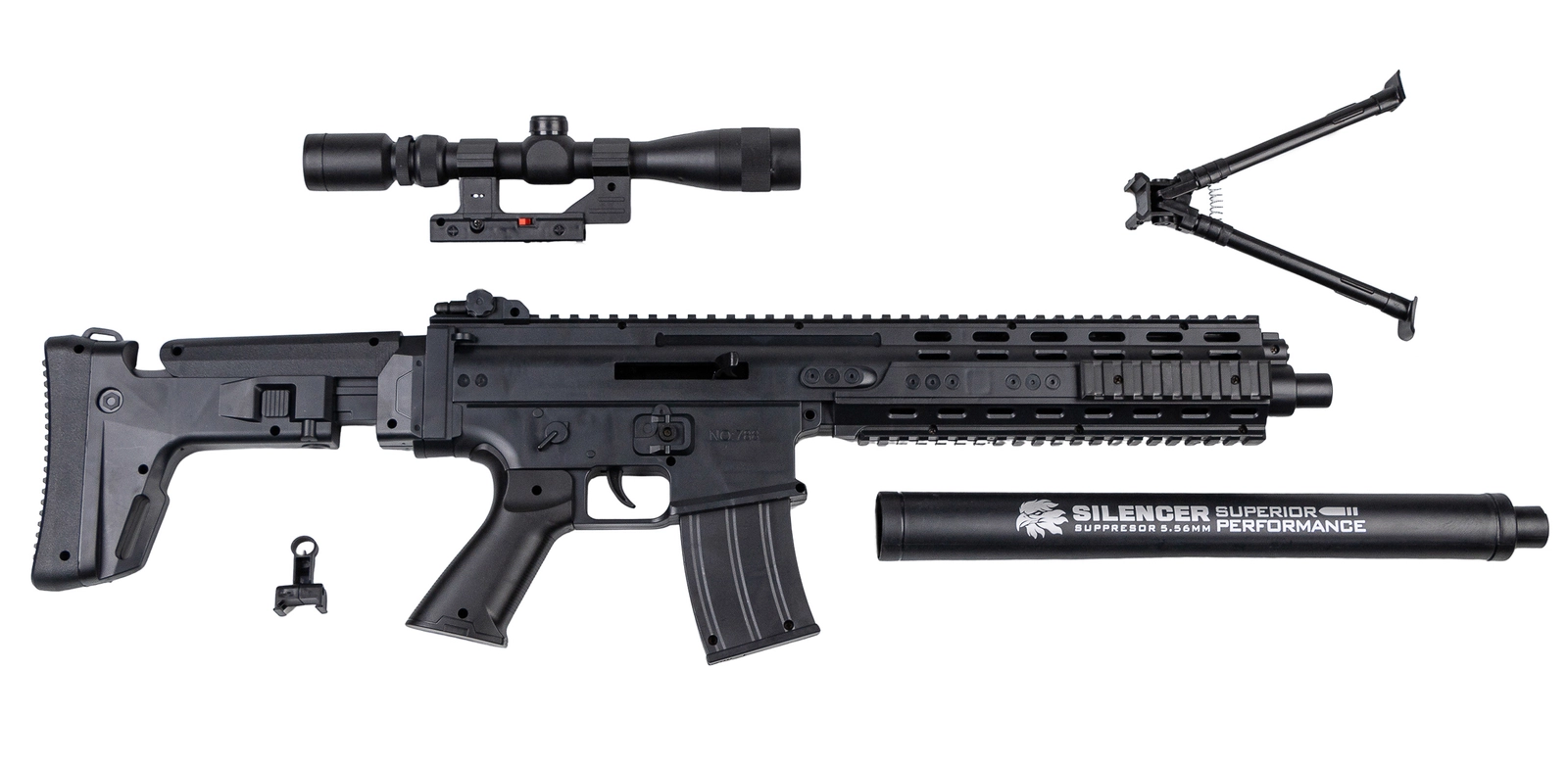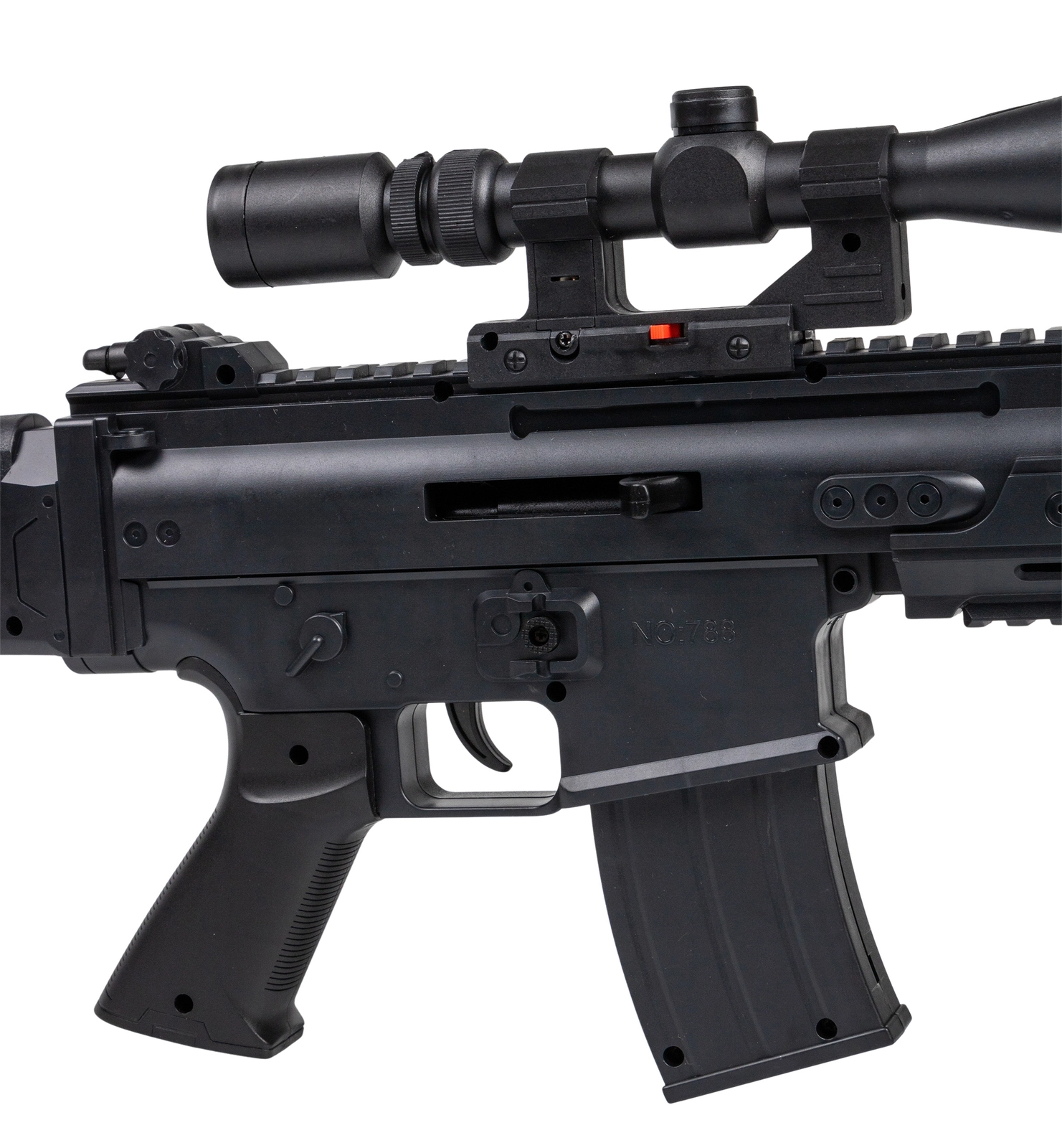 Replika karabinu na kulki plastikowe SCAR (Special Operations Forces Combat Assault Rifle). Oryginał skonstruowany był przez FN Herstal dla Dowództwa Operacji Specjalnych Stanów Zjednoczonych (USSOCOM). Był testowany m.in. przez oddziały Navy SEALs.Z końcem 2022r. karabinek SCAR był na wyposażeniu wojsk ponad 20 krajów świata.