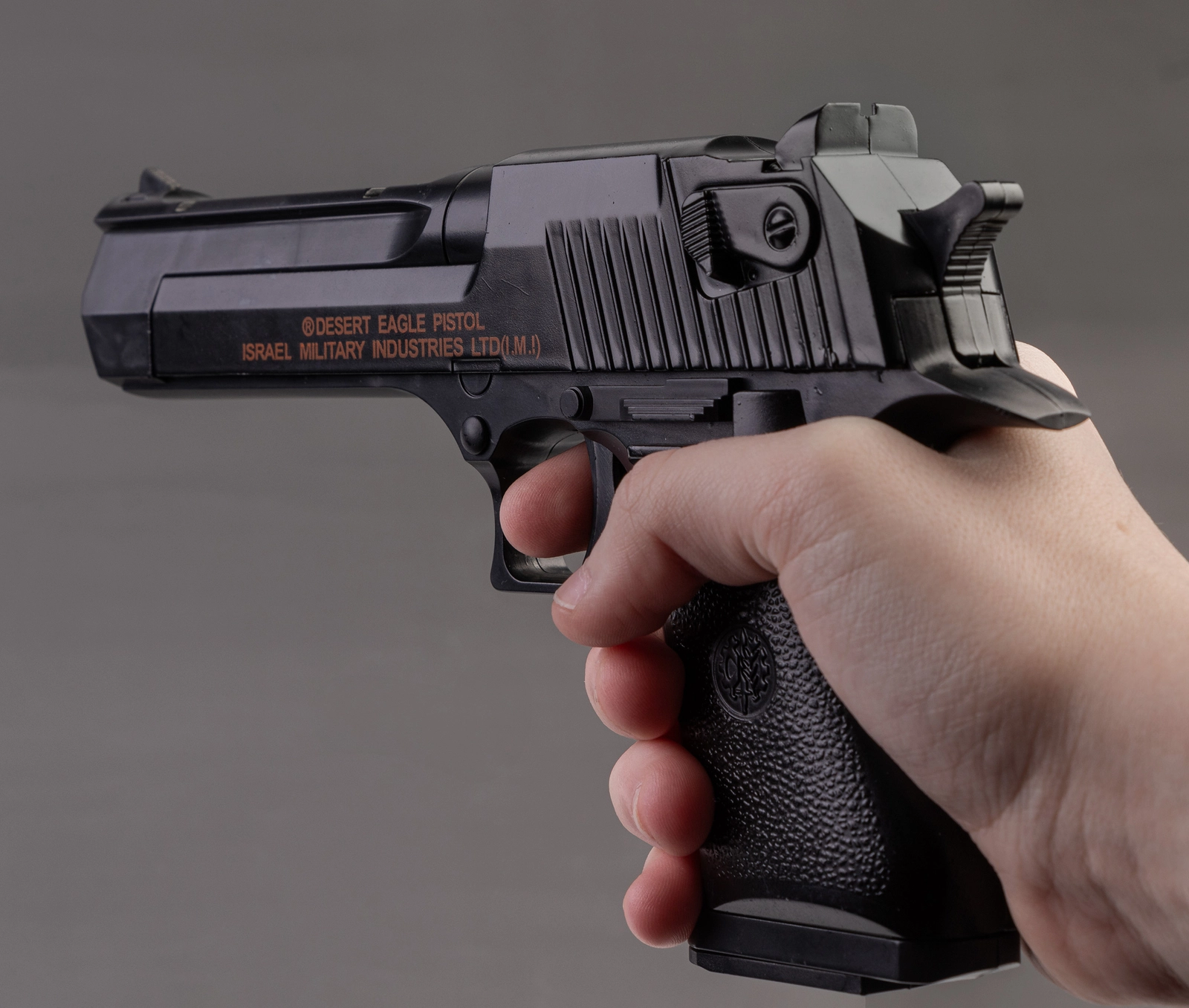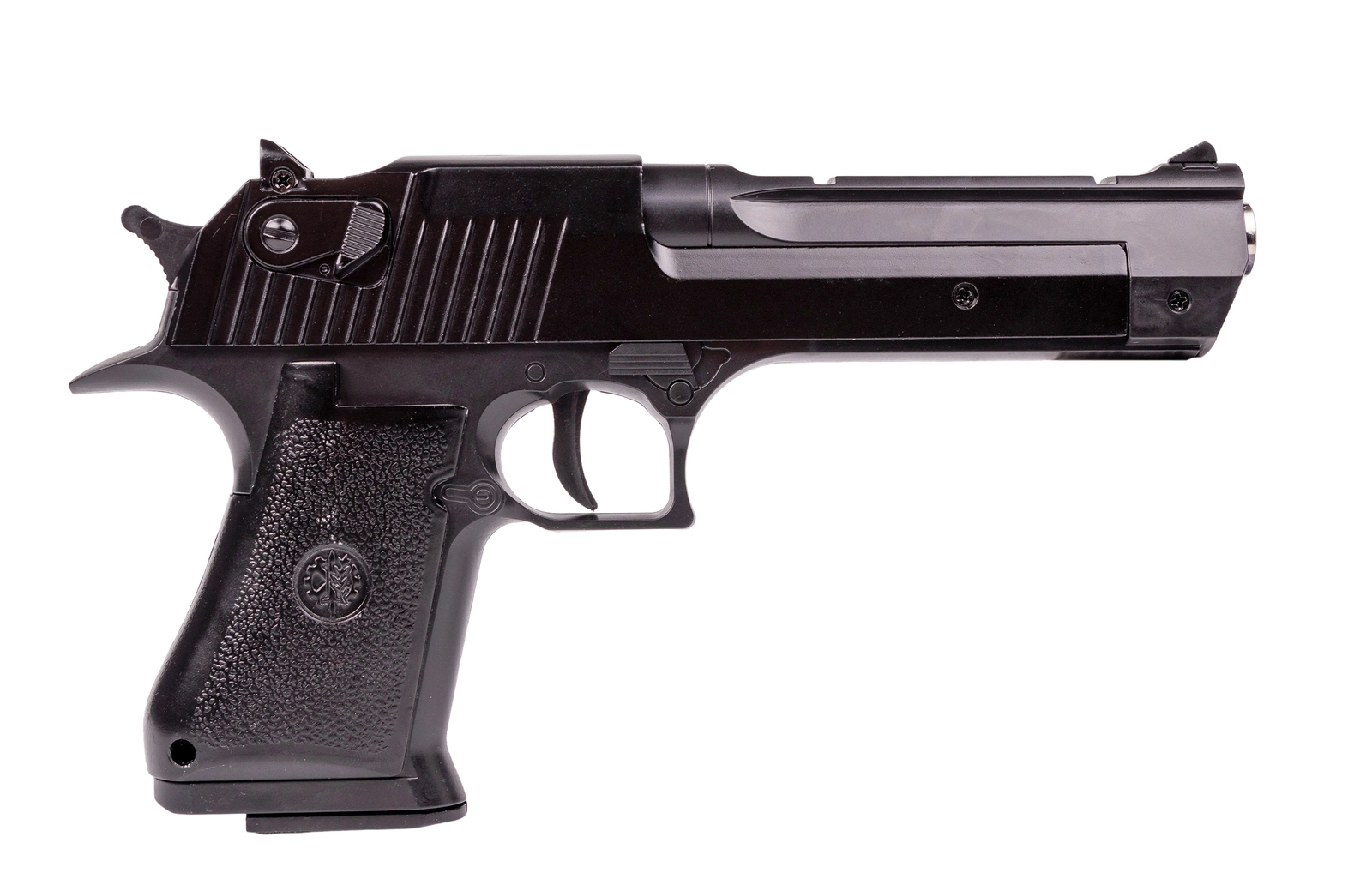 Znakomita replika pistoletu Desert Eagle. Oryginalna broń została zaprojektowana w 1979 roku przez amerykańską firmę Magnum Research, Inc. założoną w St. Paul w stanie Minnesota. Następnie była m.in. produkowana na licencji przez Israel Military Industries. Replika posiada oryginalne oznaczenia i niemal identyczny kształt palnego odpowiednika. Zaletą repliki jest ruchomy kurek na końcu zamka oraz innowacyjny sposób przeładowania (przesuwa się tylko część zamka odsłaniając komorę, co zwiększa realizm korzystania z pistoletu)