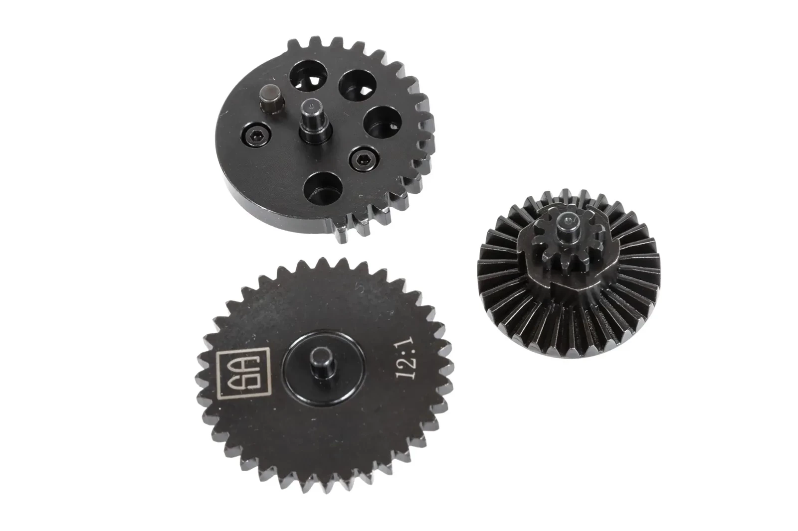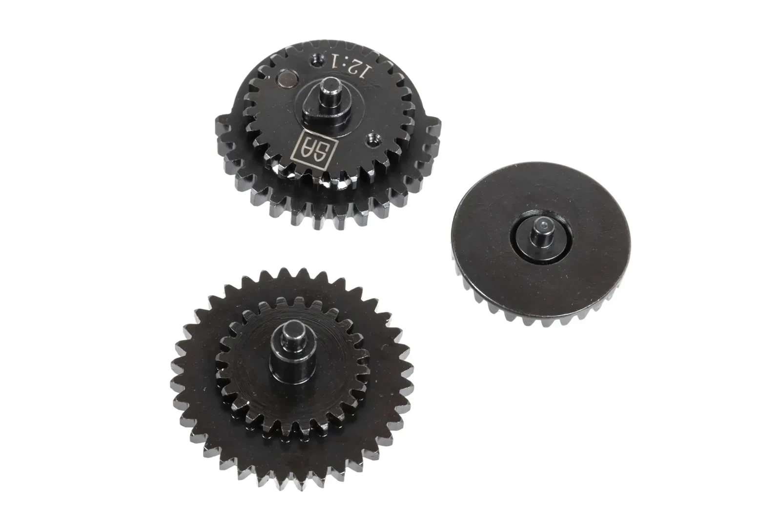 Zestaw stalowych zębatek wysokiej jakości o przełożeniu 12:1, ze względu na niższe przełożenie określanych jako High Speed.