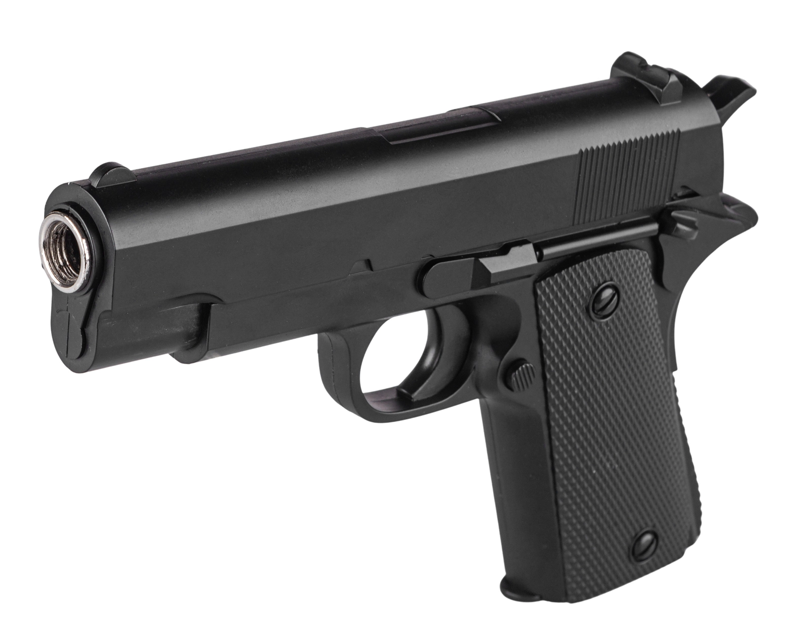 Znakomita replika pistoletu Colt 1911. W 1911 roku Colt M1911 wszedł na wyposażenie armii amerykańskiej, a w 1926 po niewielkich modyfikacjach dokonanych w wyniku doświadczeń I wojny światowej, opracowano wersję M1911A1. Pistolet w czasie II wojny światowej był etatowym wyposażeniem oficerów i podoficerów Polskich Sił Zbrojnych na Zachodzie oraz niektórych oddziałów partyzanckich.