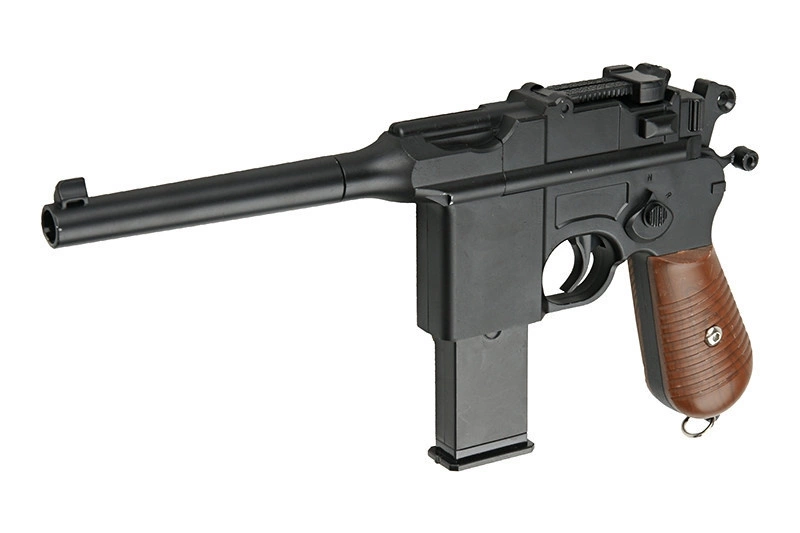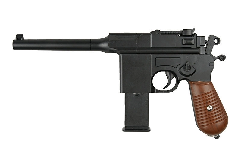 Znakomita replika pistoletu Mauser C96 - Projekt pistoletu Mauser C96 został opracowany w 1893 roku przez pracowników fabryki Mausera. Pistolet jest uznawany za pierwszy udany typ pistoletu samopowtarzalnego. Mauser C96 był komercyjnie dostępny w wielu krajach świata i używany był w wielu armiach. Był to ulubiony pistolet Winstona Churchilla.