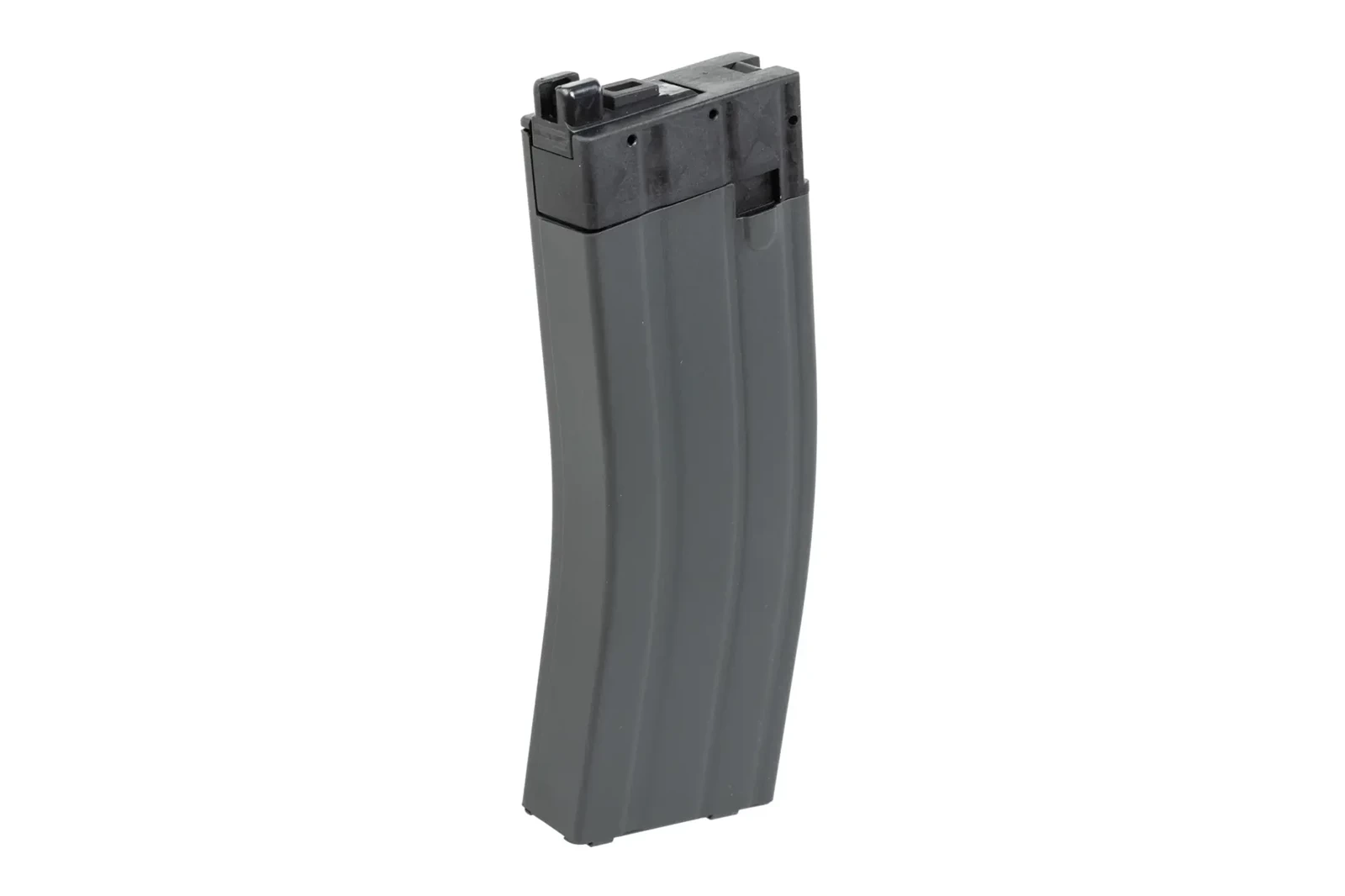 Magazynek wykonany z metalu (w tym stali) oraz tworzywa sztucznego, pomieści 35 kulek BB w kalibrze 6mm. Model posiada 2 gniazda na kapsuły CO2 12 g.