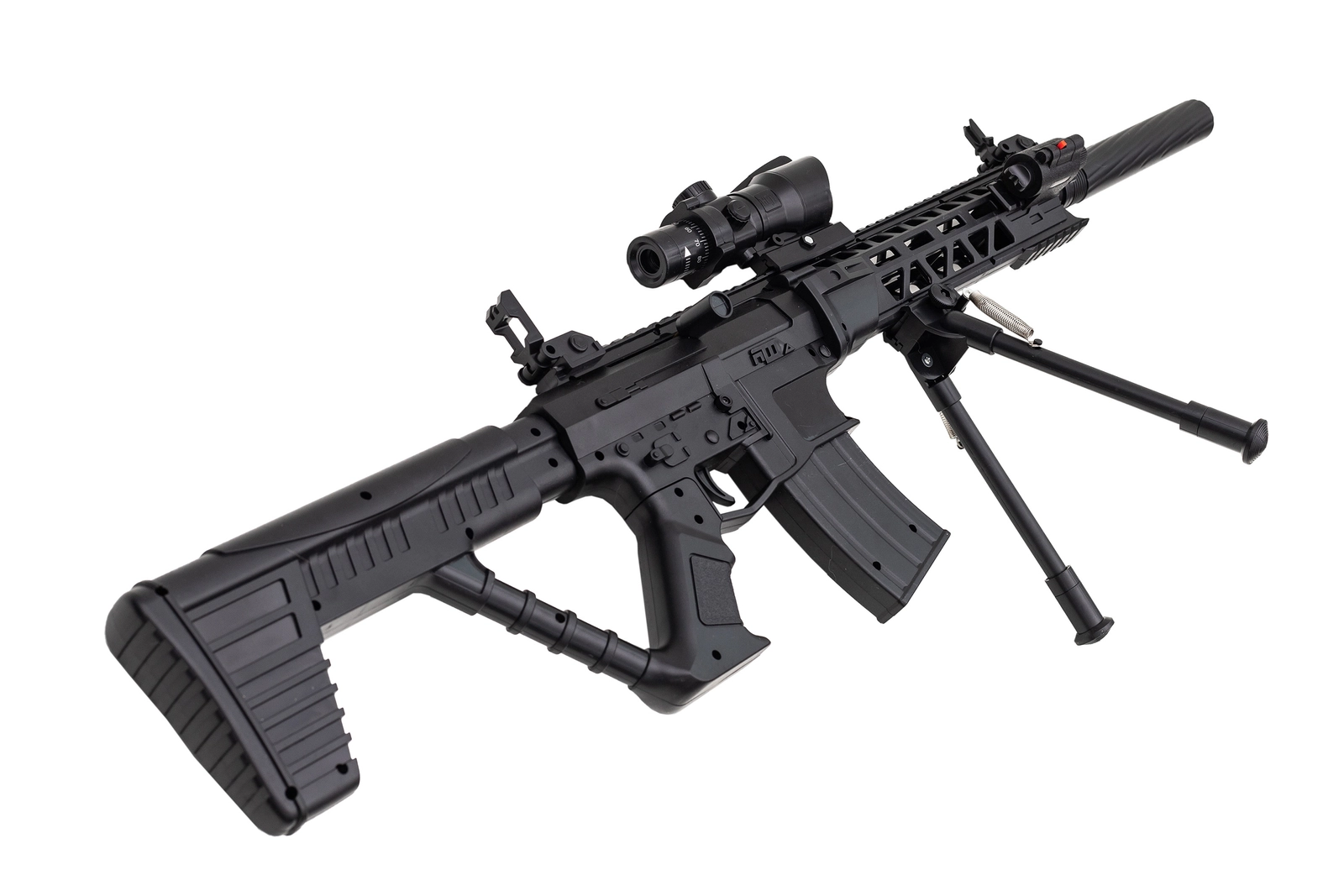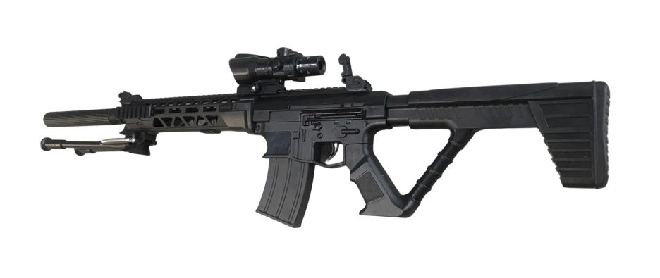Replika karabinu snajperskiego na plastikowe kulki przypominająca karabiny w stylu AR-10, ale z elementami typowymi dla wersji DMR (Designated Marksman Rifle) lub karabinów półsnajperskich. Karabin jest wielki, wykonany w większości z bardzo dobrej jakości polimeru z systemem sprężynowym. Swoim wyglądem przypomina kultowe bronie snajperskie z gier komputerowych takich jak np. counter strike. Replika ma czarny kolor. Posiada systemem sprężynowy, oparty na przeładowaniu dźwignią znajdującą się z boku karabinu. Do repliki dołączona jest atrapa lunety, tłumika i dwójnóg, czyli elementy wyposażenia jak w prawdziwej snajperce. Front karabinu wyposażono w 4 szyny RIS umożliwiające dowolne montowanie dodatkowego osprzętu.