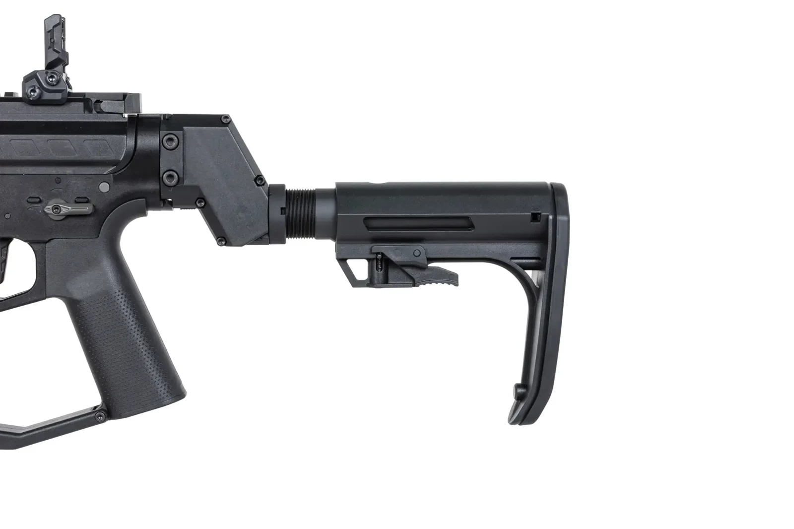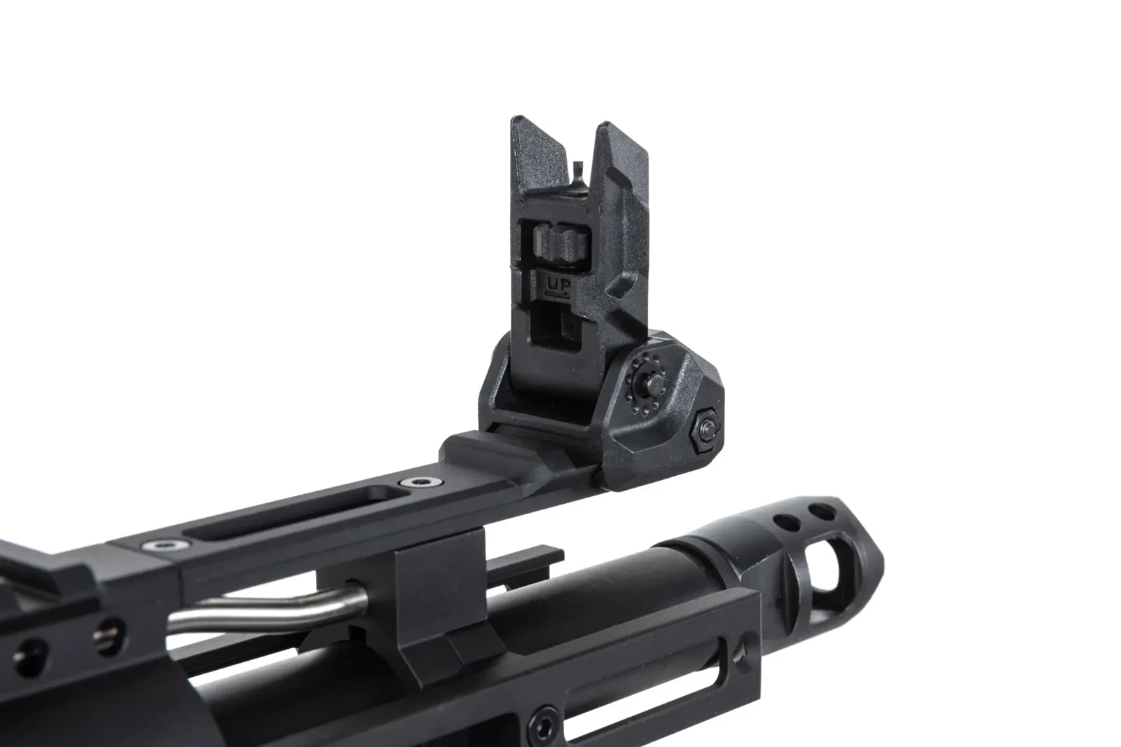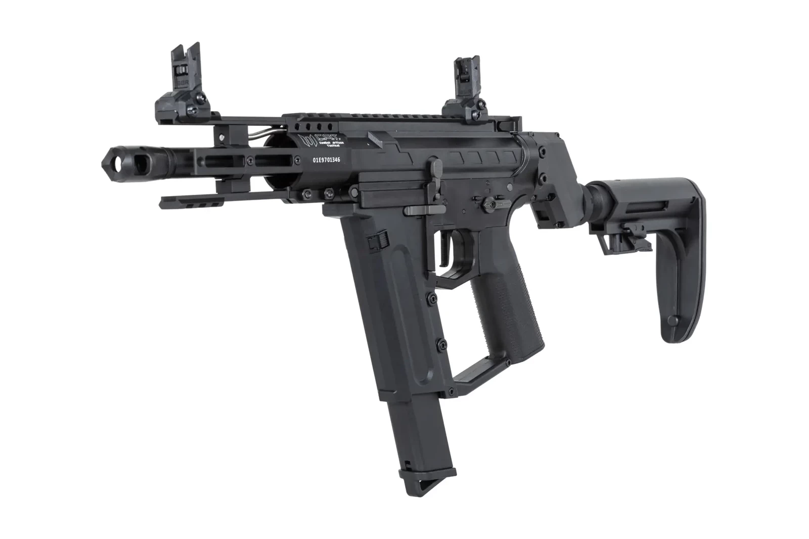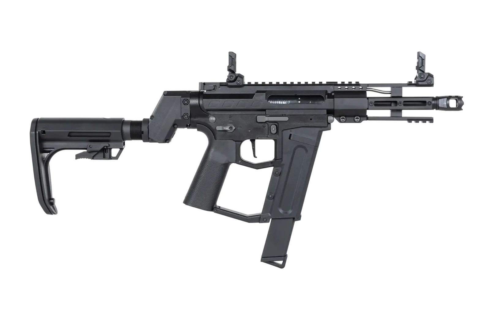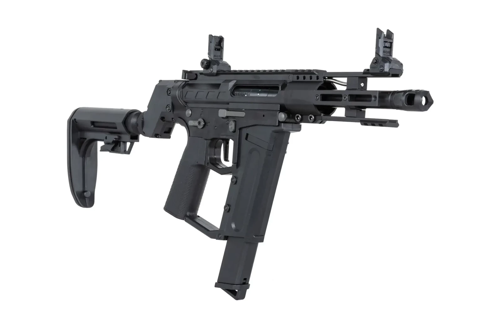 Ze stali wykonano: urządzenie wylotowe, niektóre piny oraz śruby, rurę gazową. Z aluminium uświadczymy łoże M-LOK o długości 5.5 cala. Na łożu znajdują się szyny RIS. Dodatkowo aluminiowe jest prowadnica kolby, lufa zewnętrzna, manipulatory (bolt-catch, zatrzask magazynka oraz selektor ognia) - wszystkie są obustronne. Z tworzywa wykonano korpus repliki wraz z grzbietową szyną RIS, dźwignie przeładowania, chwyt pistoletowy (z chropowatą powierzchnią), regulowaną kolbę oraz magazynek.