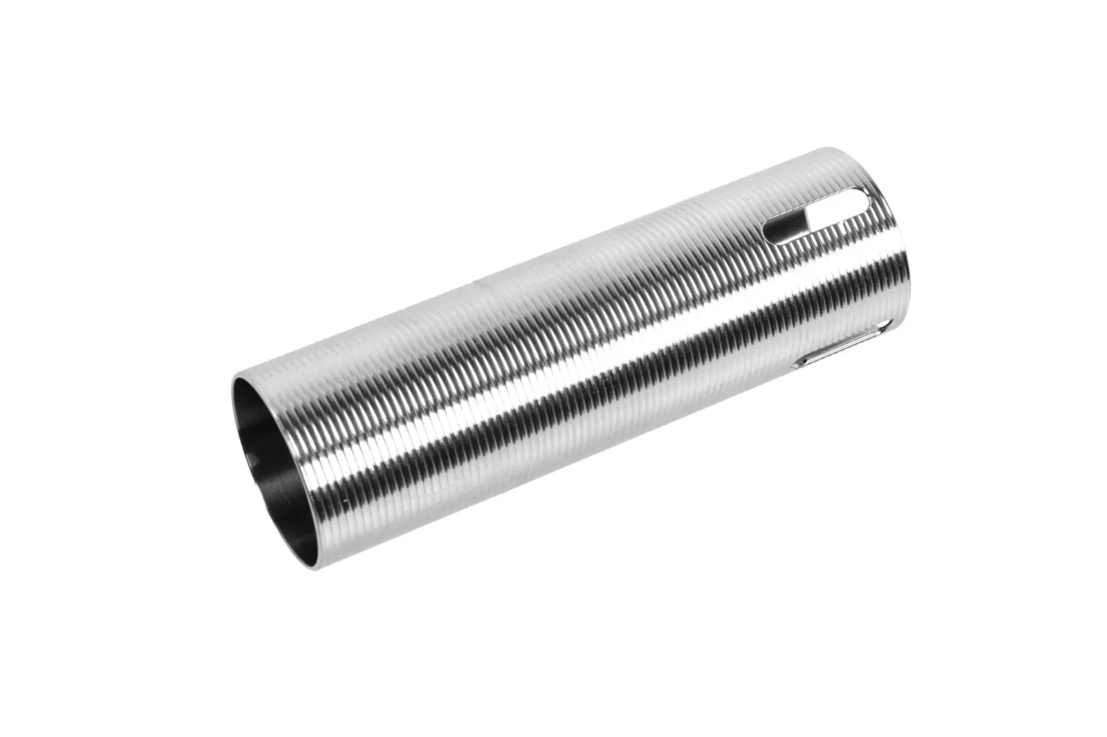 Cylinder od producenta FPS Softair do replik L85/SR25/PSG-1 został wykonany przy wykorzystaniu stali nierdzewnej. Żebrowana konstrukcja modelu ułatwi odprowadzanie ciepła.