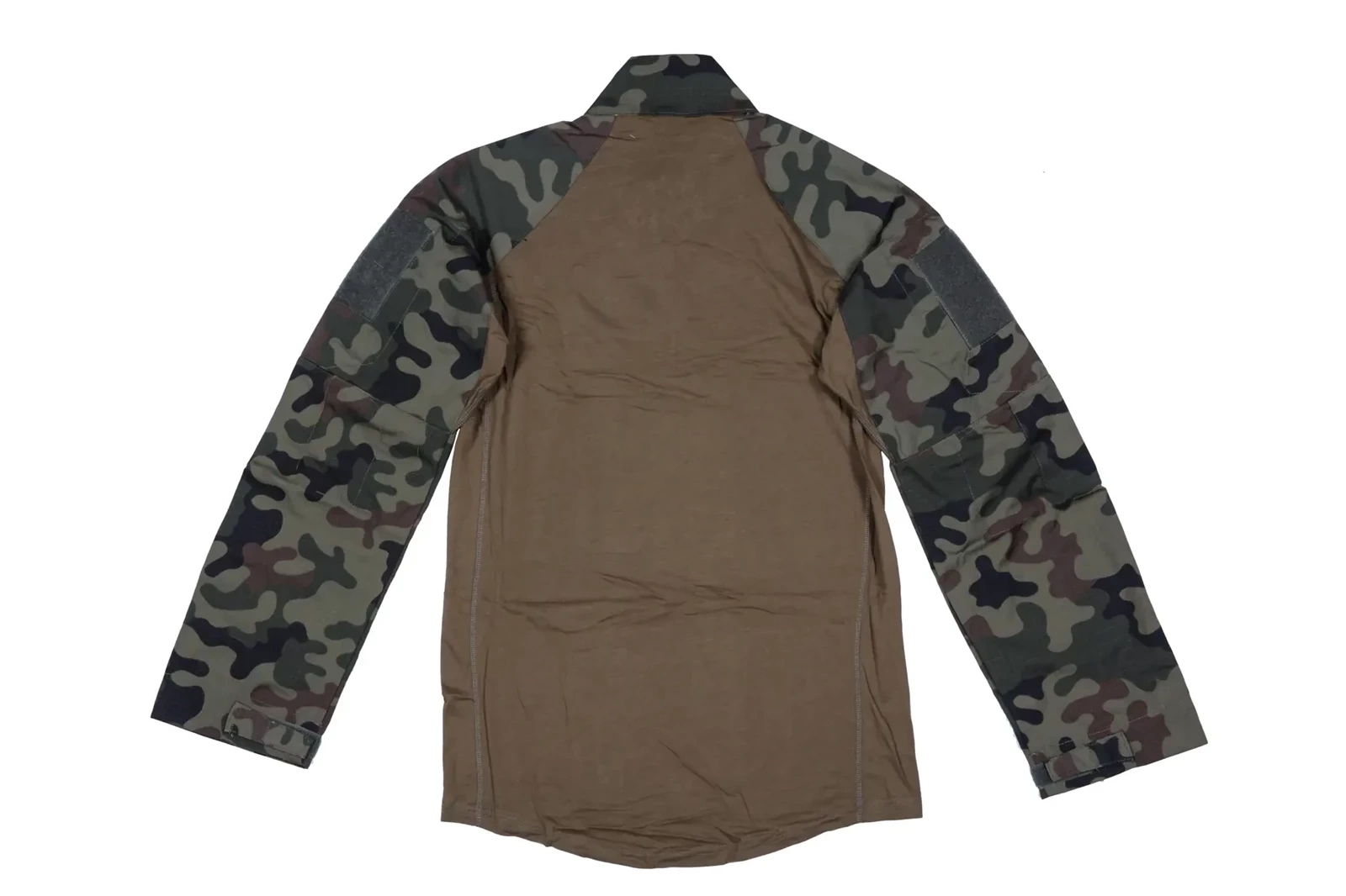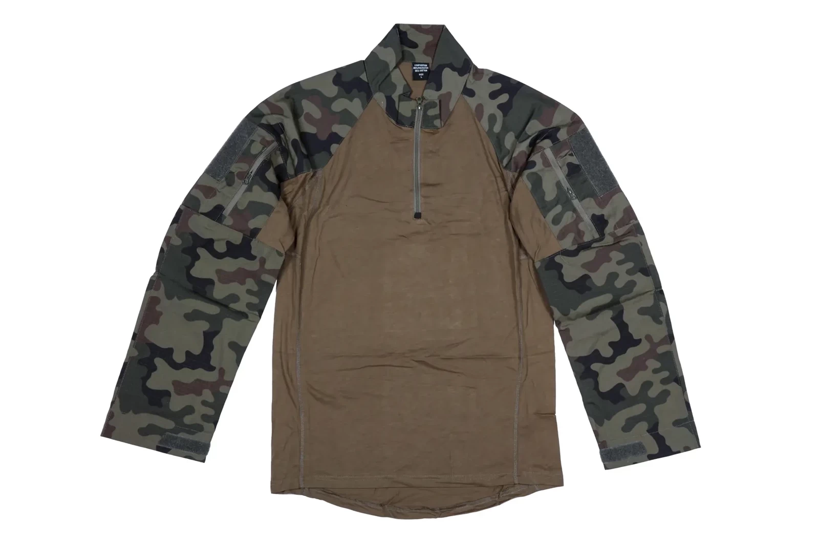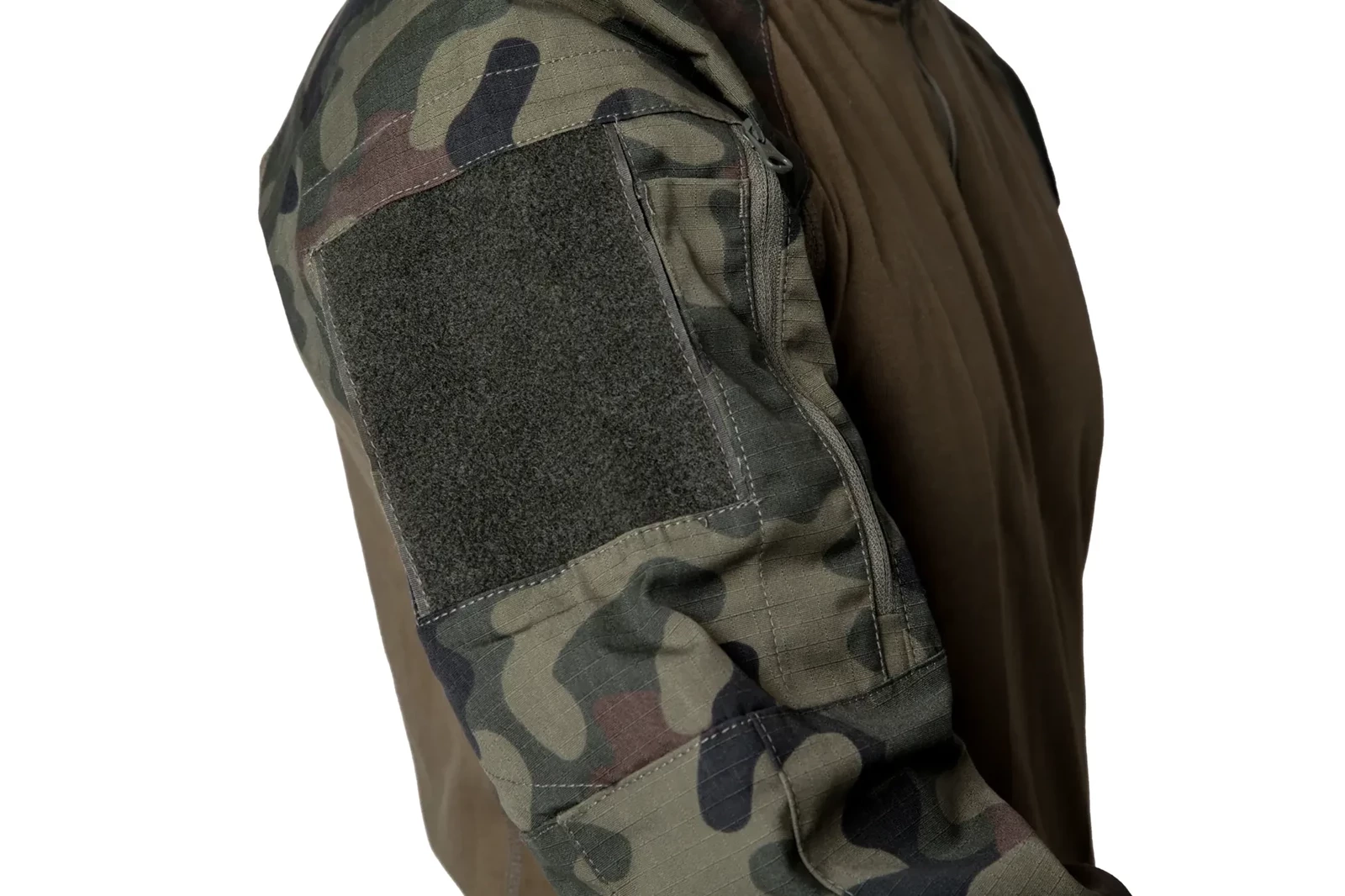 Bluza została wykonana z wytrzymałego materiału Polycotton Rip-Stop, który skutecznie chroni przed przetarciami i uszkodzeniami w trudnych warunkach terenowych. Dodatkowe panele na rzepy pozwalają na personalizację bluzy poprzez umieszczenie naszywek, oznaczeń lub morale patches. W zestawie znajduje się również komplet ochraniaczy na łokcie, co zwiększa bezpieczeństwo i komfort użytkowania.