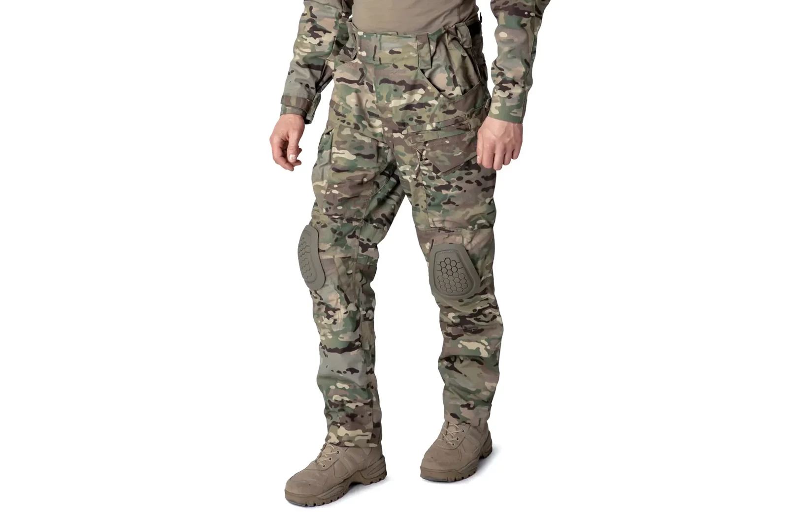 Spodnie zostały wykonane z wytrzymałego materiału Polycotton Rip-Stop, który łączy odporność na przetarcia i rozdarcia z komfortem noszenia. 13 praktycznych kieszeni, w tym pojemne cargo, umożliwia wygodne przenoszenie całego niezbędnego wyposażenia. W zestawie znajduje się również komplet ochraniaczy na kolana, które doskonale zabezpieczają podczas działań w terenie.