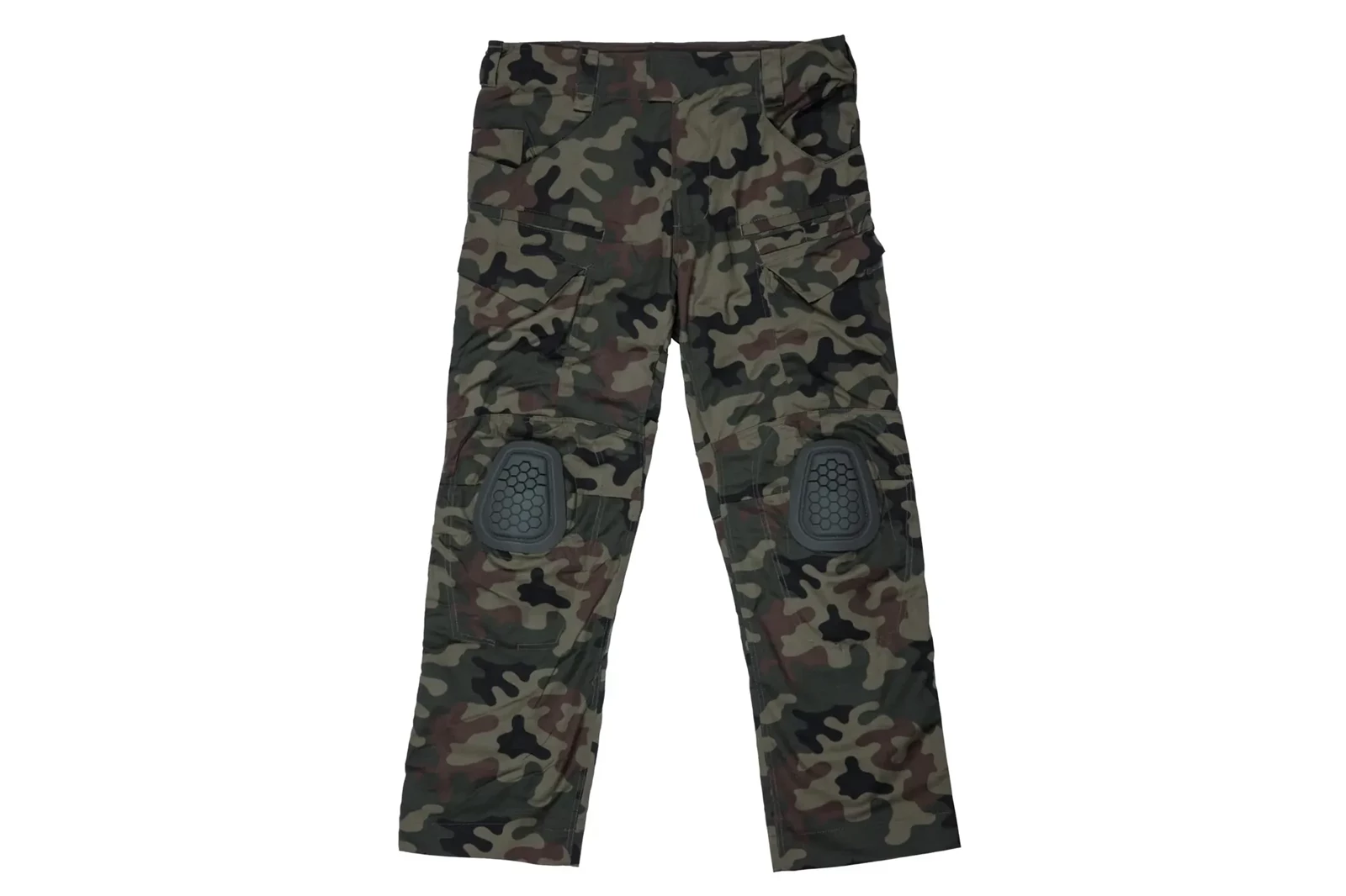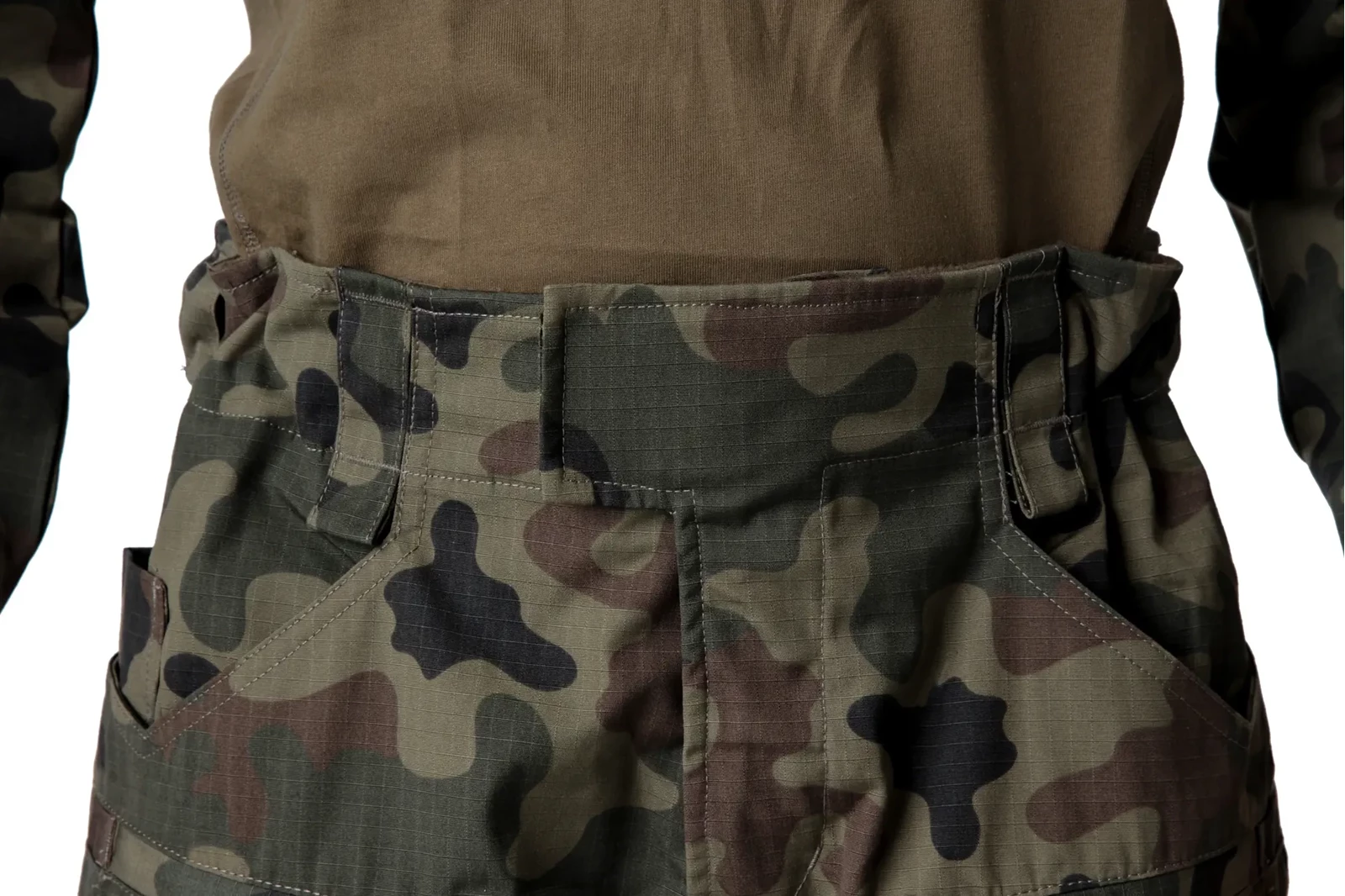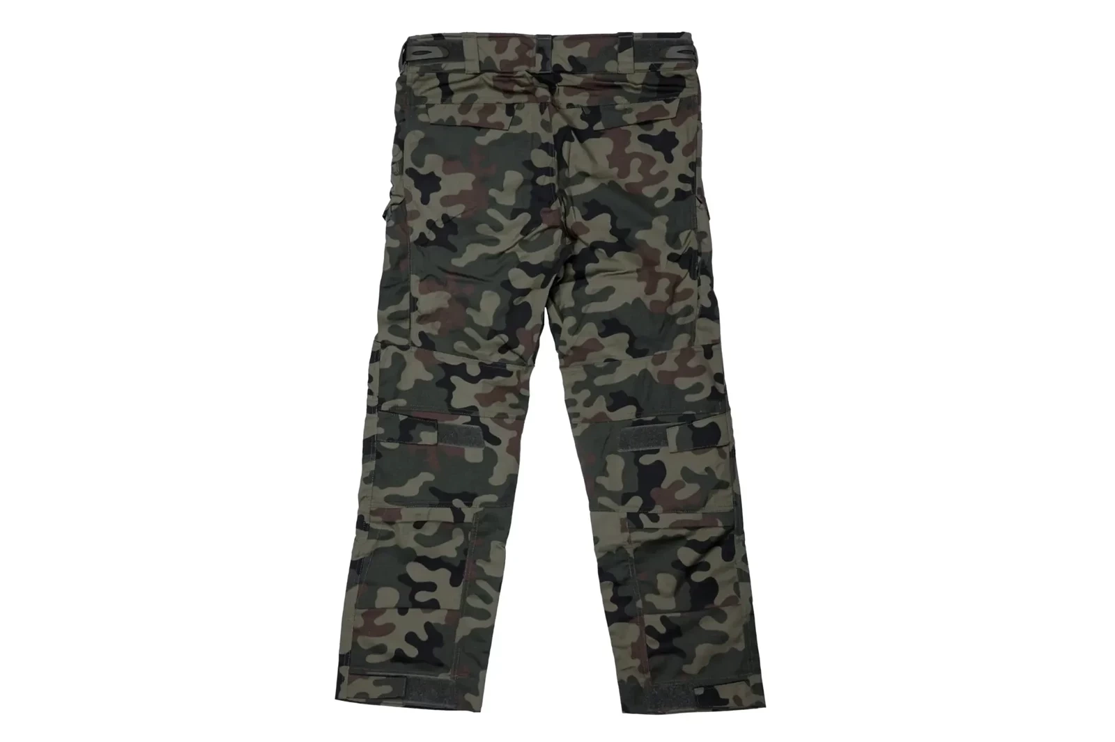 Spodnie zostały wykonane z wytrzymałego materiału Polycotton Rip-Stop, który łączy odporność na przetarcia i rozdarcia z komfortem noszenia. 13 praktycznych kieszeni, w tym pojemne cargo, umożliwia wygodne przenoszenie całego niezbędnego wyposażenia. W zestawie znajduje się również komplet ochraniaczy na kolana, które doskonale zabezpieczają podczas działań w terenie.