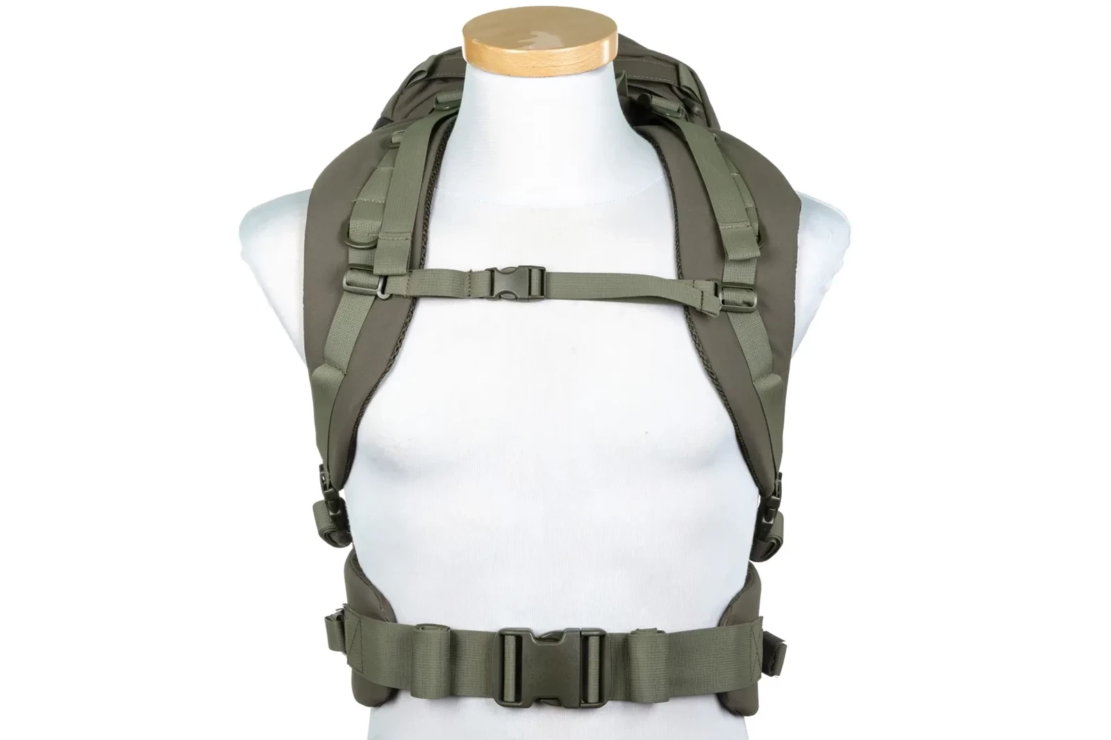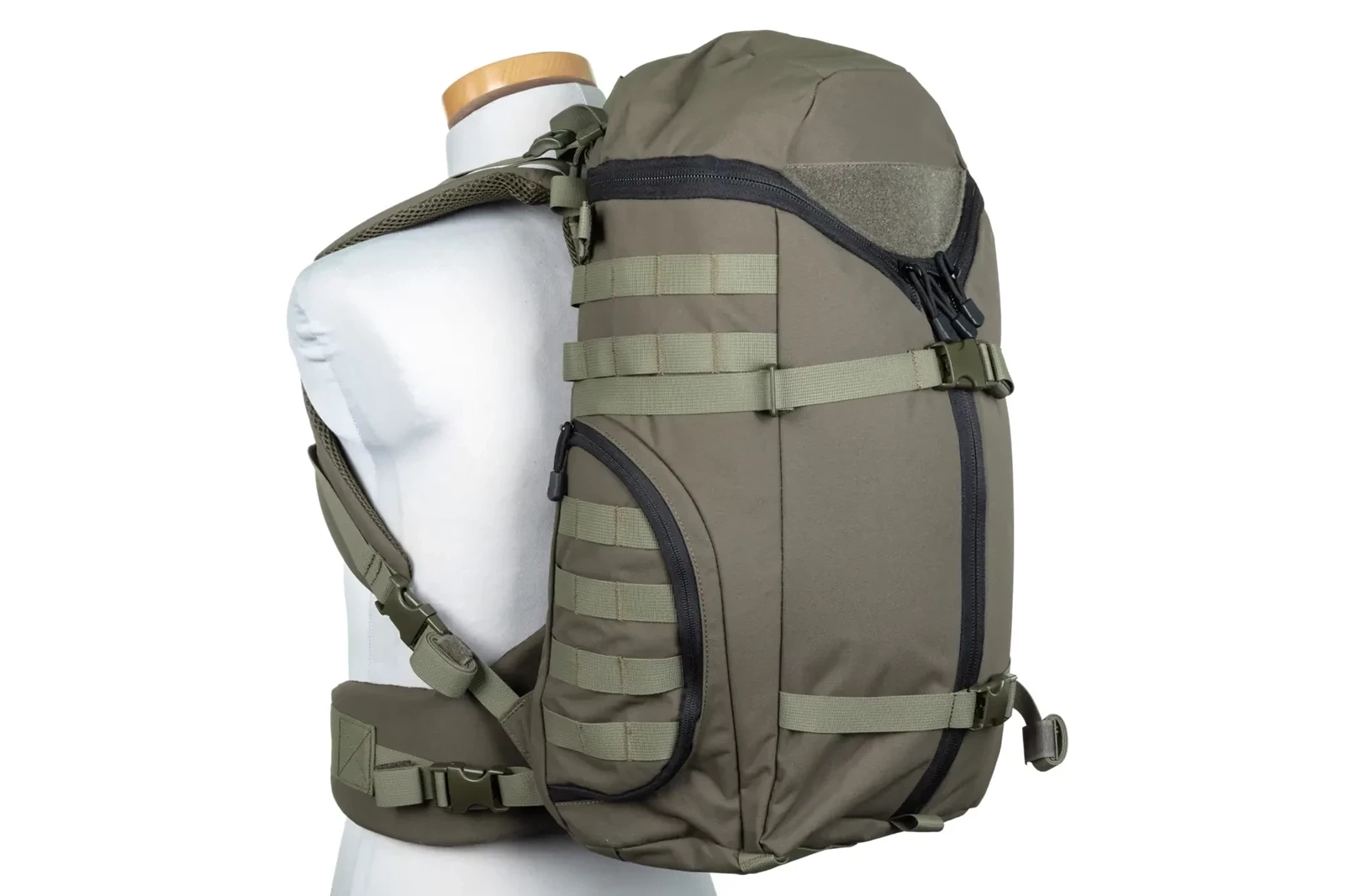 Zewnętrzne ściany są kompatybilne z systemem MOLLE/PALS, co pozwoli na rozbudowę plecaka o dodatkowe kieszenie czy ładownice.