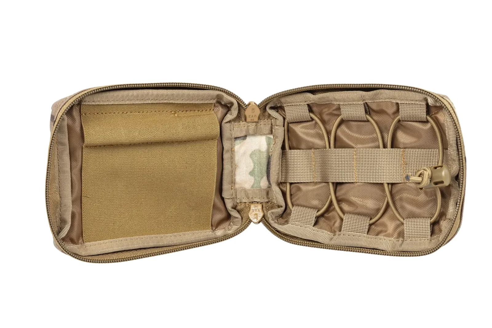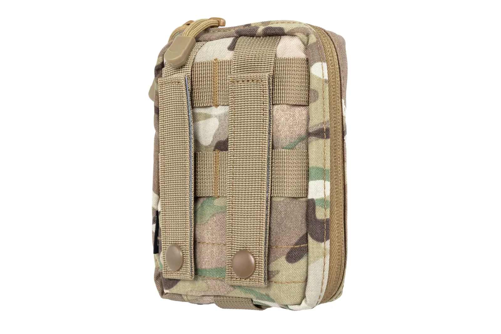 Mała apteczka Specna Arms Tactical z wytrzymałego CORUND™ 500D, zamykana dwubiegunowym zamkiem, otwierającym się na całej długości dla łatwego dostępu. Wnętrze wyposażone w elastyczne taśmy i linki mocujące, które ułatwią organizację transportowanego wyposażenia medycznego. Model wyposażono w mocowanie kompatybilne z systemem MOLLE, co pozwoli zamocować produkt na kamizelkach, pasach lub plecakach. Dla lepszej identyfikacji, front posiada oznaczenie medyczne. Co więcej, również na froncie znajdziemy panel-rzep, który umożliwi mocowanie dodatkowych naszywek czy identyfikatorów.