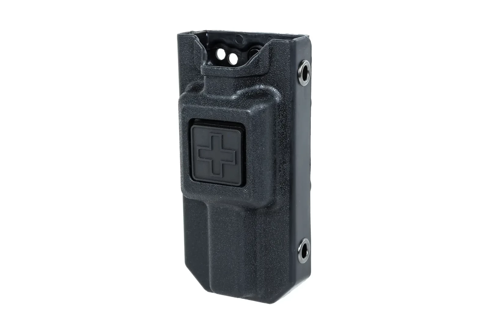 Ładownica na stazę taktyczną typu CAT została wykonana przy wykorzystaniu wytrzymałego tworzywa. Model jest kompatybilny z systemem MOLLE, co umożliwi zamocowanie na pasie, kamizelce czy bezpośrednio na apteczce. Front posiada naklejony symbol medyczny, który pozwoli na szybką identyfikację ładownicy