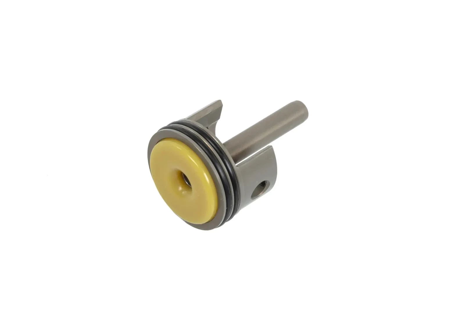 Głowica cylindra posiada wydłużoną prowadnicę dyszy o długości 30mm (średnica 5.4mm, co eliminuje luzy między dyszą a prowadnicą) dla dysz +32mm oraz zamontowany zderzak tłoka o twardości 70 SH, co pozwoli na korzystanie ze sprężyn M130 w przypadku replik AEG.