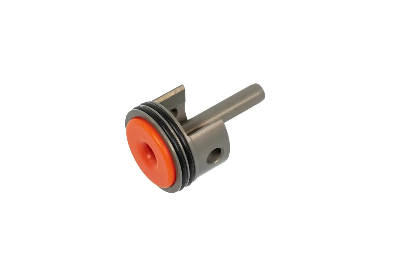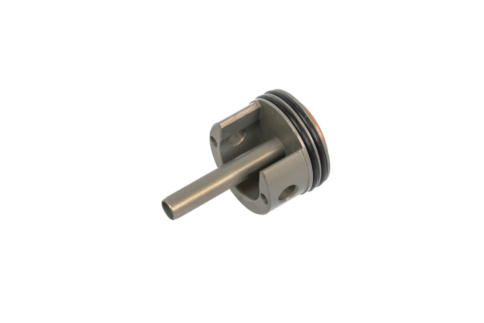 Głowica od producenta EPeS została wykonana przy wykorzystaniu wytrzymałego aluminium CNC wraz z wykończeniem H+PTFE, które pozwoli na osiągnięcie bardzo dobrej i płynnej pracy, przy jednoczesnym zachowaniu wytrzymałości i trwałości. Głowica cylindra posiada wydłużoną prowadnicę dyszy o długości 30mm (średnica 5.4mm, co eliminuje luzy między dyszą a prowadnicą) dla dysz +32mm oraz zamontowany zderzak tłoka o twardości 90 SH, co pozwoli na korzystanie ze sprężyn M170 i mocniejszych dla replik AEG.