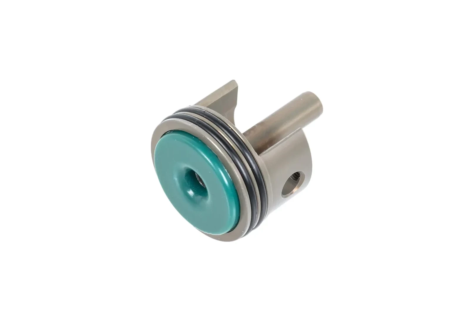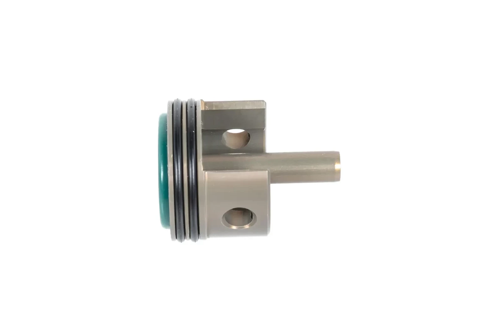 Głowica od producenta EPeS została wykonana przy wykorzystaniu wytrzymałego aluminium CNC wraz z wykończeniem H+PTFE, które pozwoli na osiągnięcie bardzo dobrej i płynnej pracy, przy jednoczesnym zachowaniu wytrzymałości i trwałości. Głowica cylindra posiada wydłużoną prowadnicę dyszy o długości 23mm (średnica 5.35mm) - dla dysz u długości 24-32mm (Np. SR25) oraz zamontowany zderzak tłoka o twardości 80 SH, co pozwoli na korzystanie ze sprężyn M160 w przypadku replik AEG.