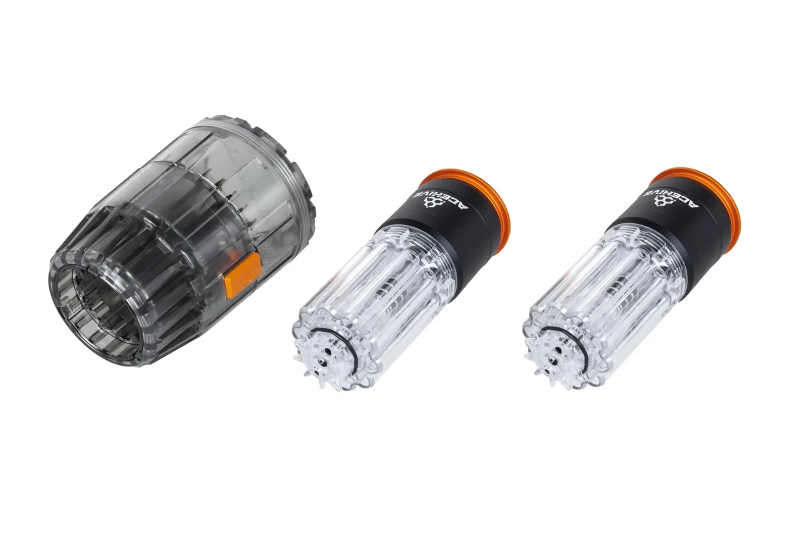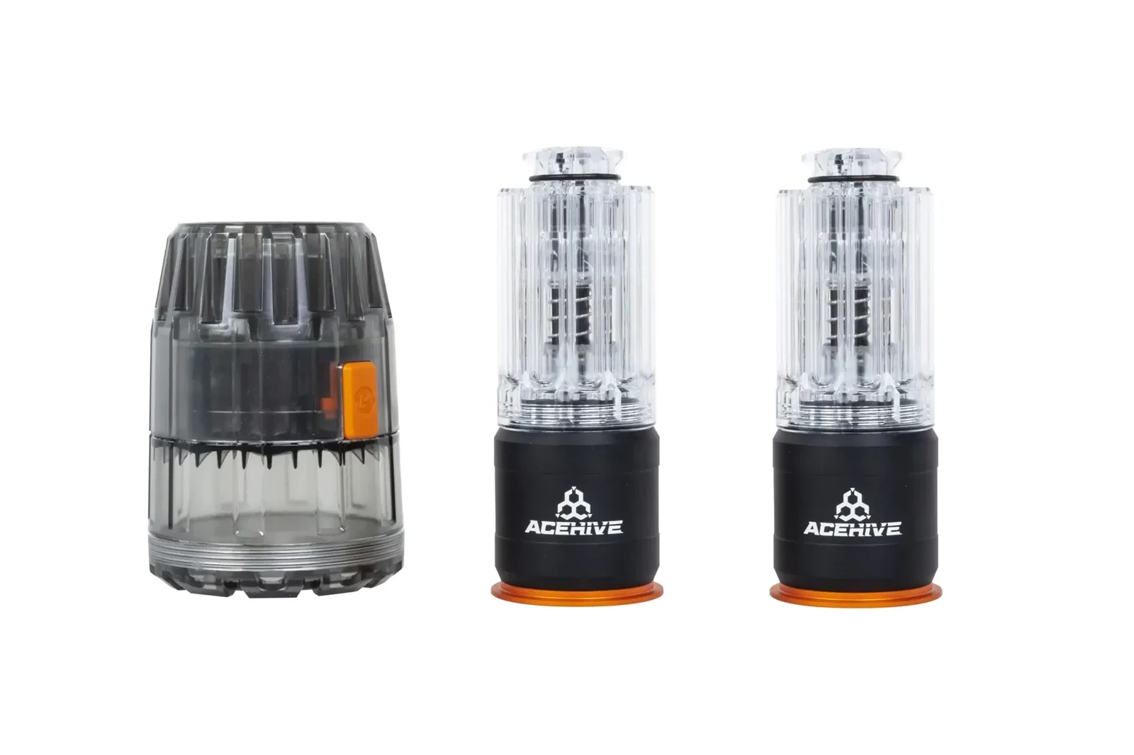 Prezentowany zestaw składa się z dwóch granatów ASG oraz szybkoładowarki, która umożliwi błyskawiczne uzupełnienie kulek. AceHive wraz ze szybkoładowarką Spawner posiada unikalny system, który jednym ruchem umożliwi w ułamku sekundy uzupełnić granaty o kolejne 80 sztuk airsoftowych kulek.