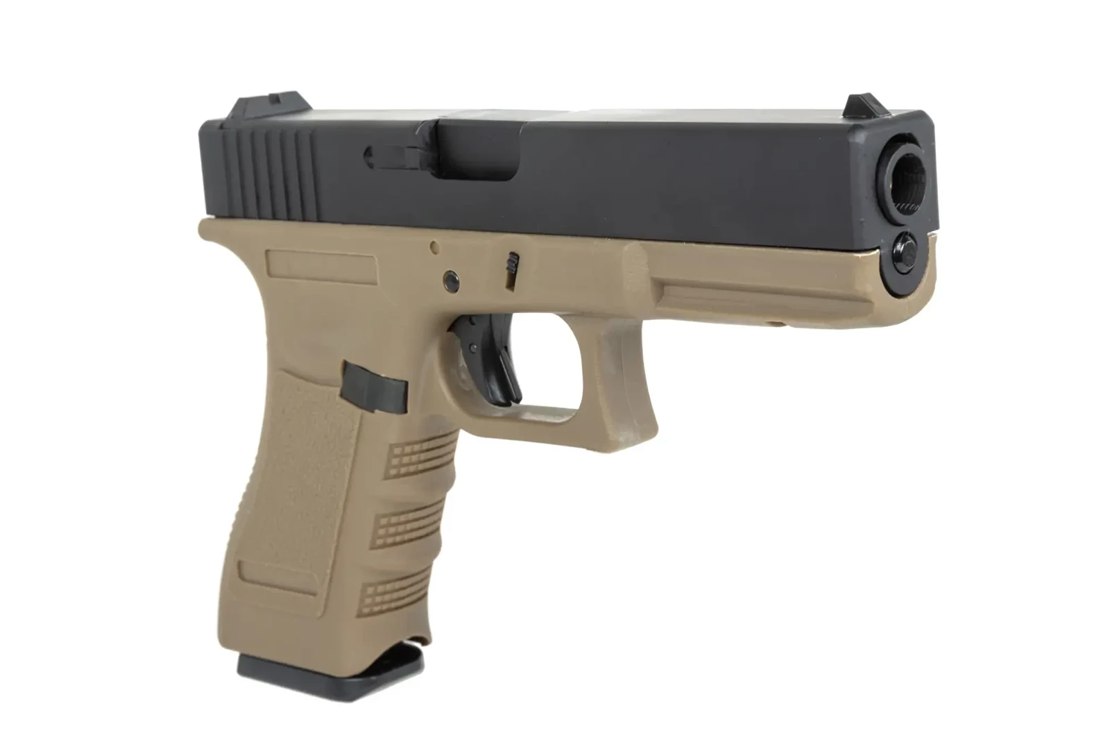 Replika pistoletu o napędzie gazowym produkcji firmy East & Crane. Replika została wykonana z metalu oraz wysokiej jakości tworzywa sztucznego. Z tworzywa sztucznego wykonano wygodny chwyt pistoletowy, szkielet repliki oraz drobne wewnętrzne i zewnętrzne elementy. Z metalu wykonano zaś zamek i magazynek mieszczący 24 kulki.