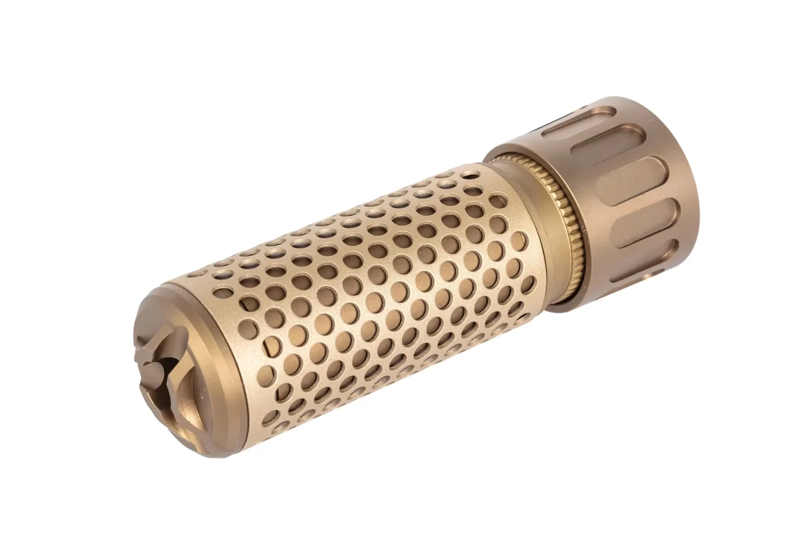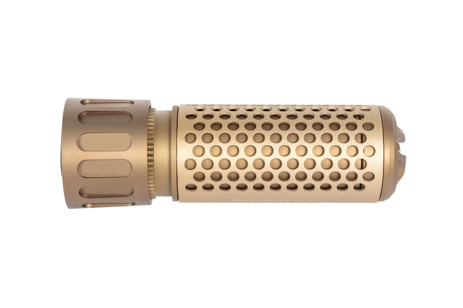 W pierwszej kolejności należy zwrócić uwagę na stalową replikę tłumika płomienia QD, który posiada gwint 14 mm CCW. Replika tłumika płomienia umożliwi błyskawiczny montaż drugiego elementu - Repliki tłumika dźwięku Predator MK II QD. Predator MK II cechuje się wyjątkową wytrzymałością oraz trwałością a jednocześnie bardzo ciekawym, agresywnym i niecodziennym wyglądem. Wewnątrz MKII znajdziemy Tracer Brighter R