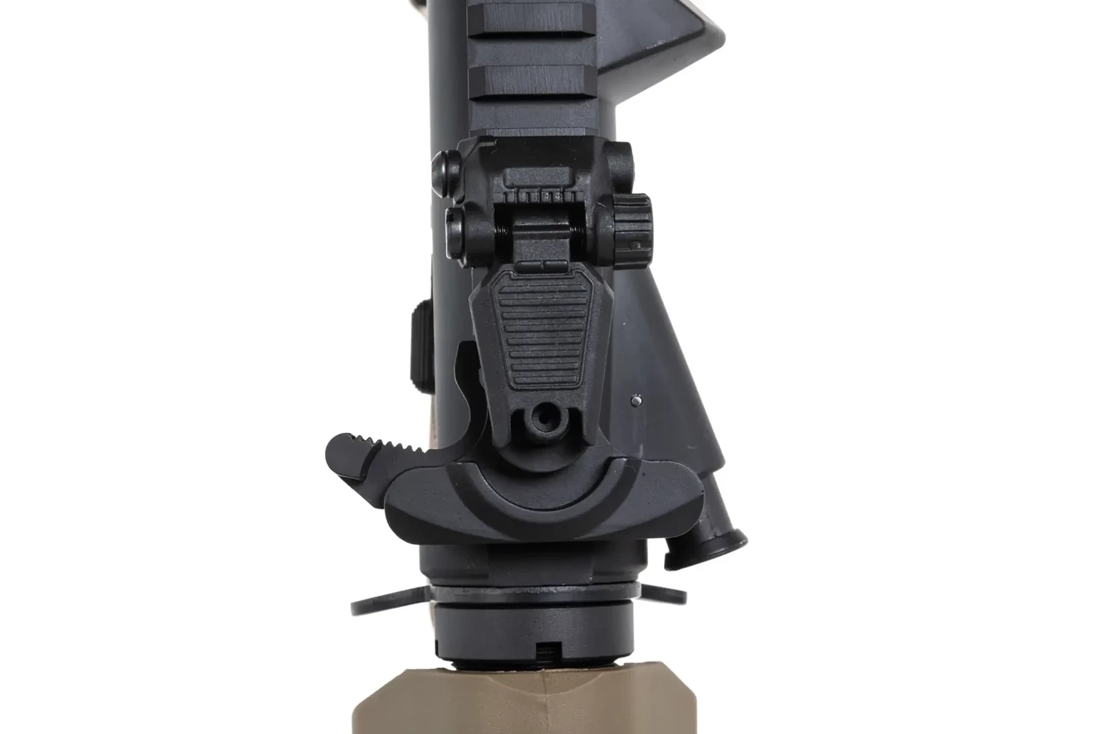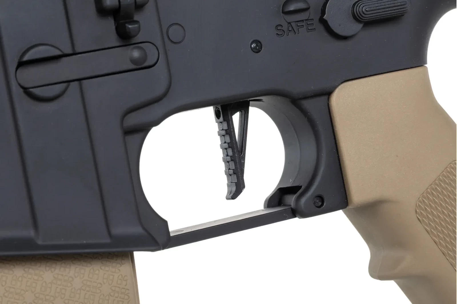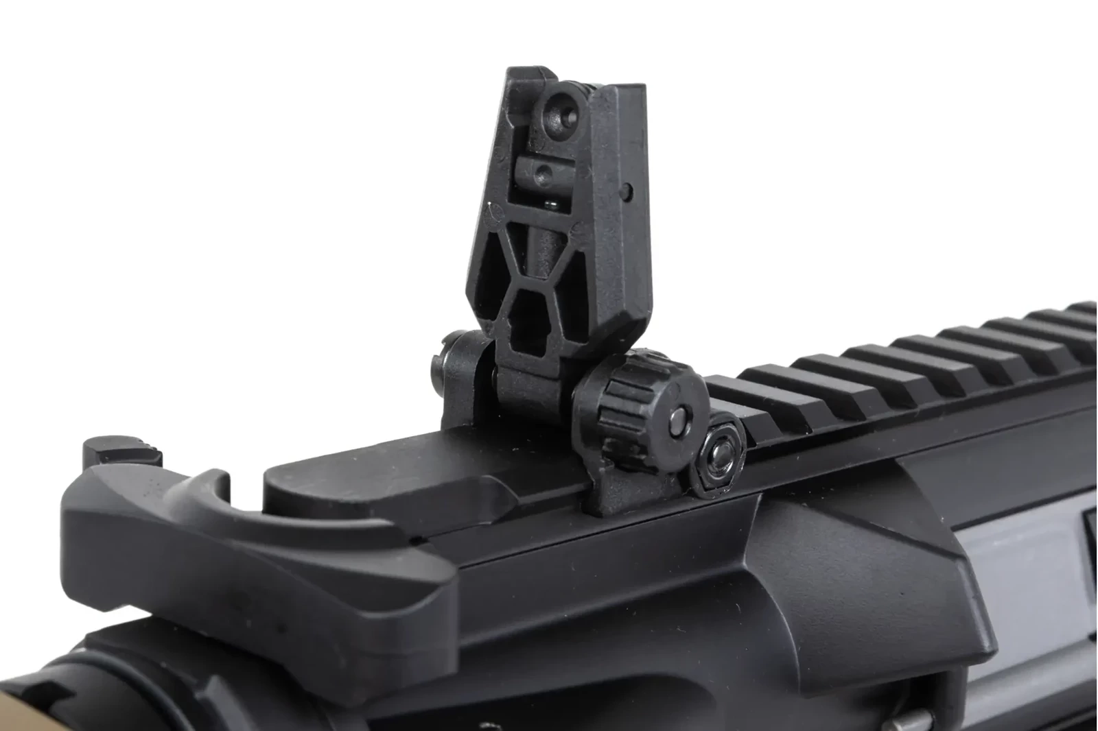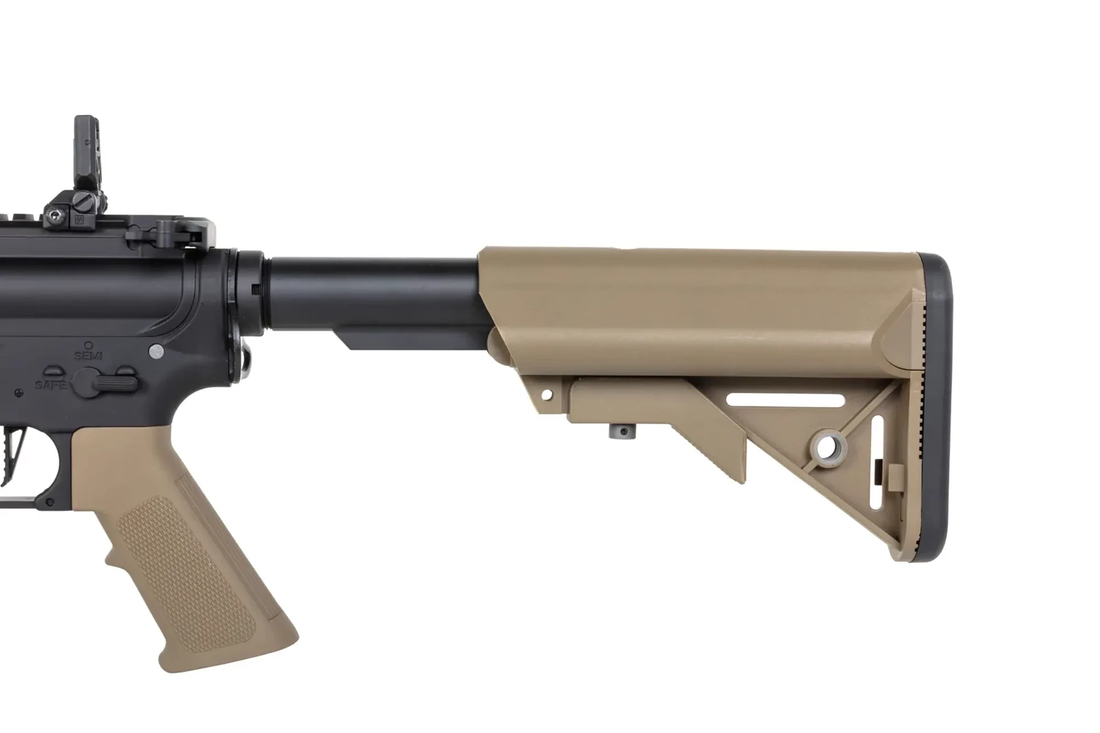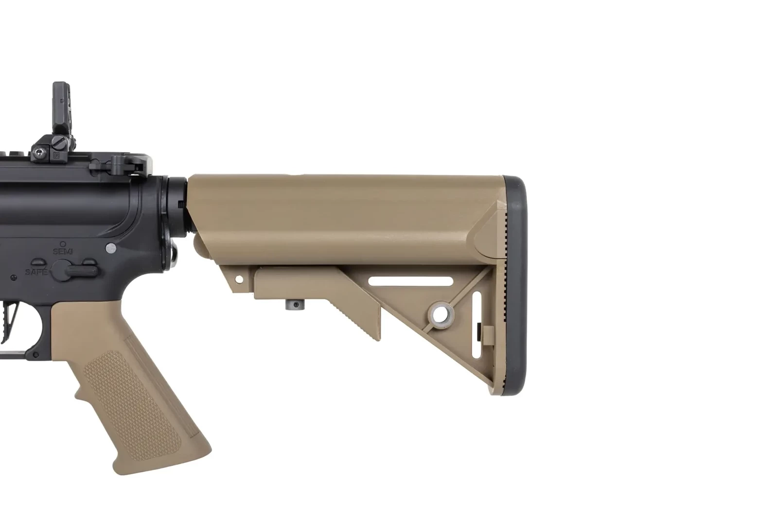 Replika SA-E19 EDGE™ została wyposażona w system szybkiej wymiany sprężyny ESA™. Dzięki niemu, bez żadnych specjalistycznych narzędzi i w kilka chwil można wymienić fabrycznie zamontowaną sprężynę na słabszą M90 – obie znajdują się w zestawie. Można też bez problemu zastosować mocniejszą sprężynę M140 – ze względu na wzmocniony gearbox.