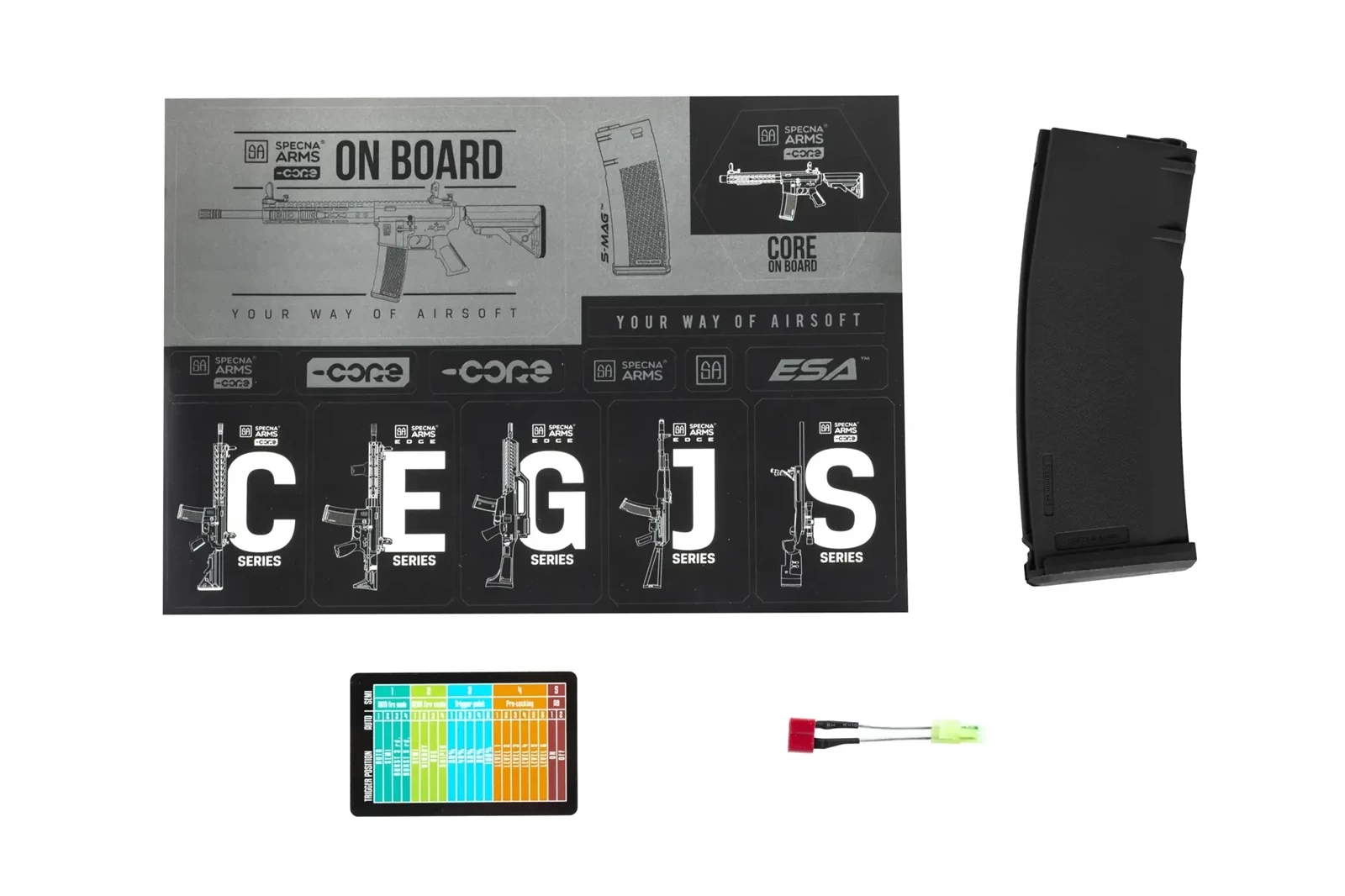 Specna Arms wychodząc naprzeciw oczekiwaniom klientów prezentuje linię CORE™ - wyjątkową serię replik, która wprowadza nową jakość na rynku. Atrakcyjna cena w połączeniu z wysokiej jakości materiałami sprawia, że jest to seria zarówno dla początkujących jak i wytrawnych airsoftowych graczy. W zestawie dołączono wbudowany układ HAL™. Układ kontroli spustu wspomaga działanie repliki oraz umożliwia programowanie funkcji w łatwy sposób przy użyciu spustu oraz selektora.