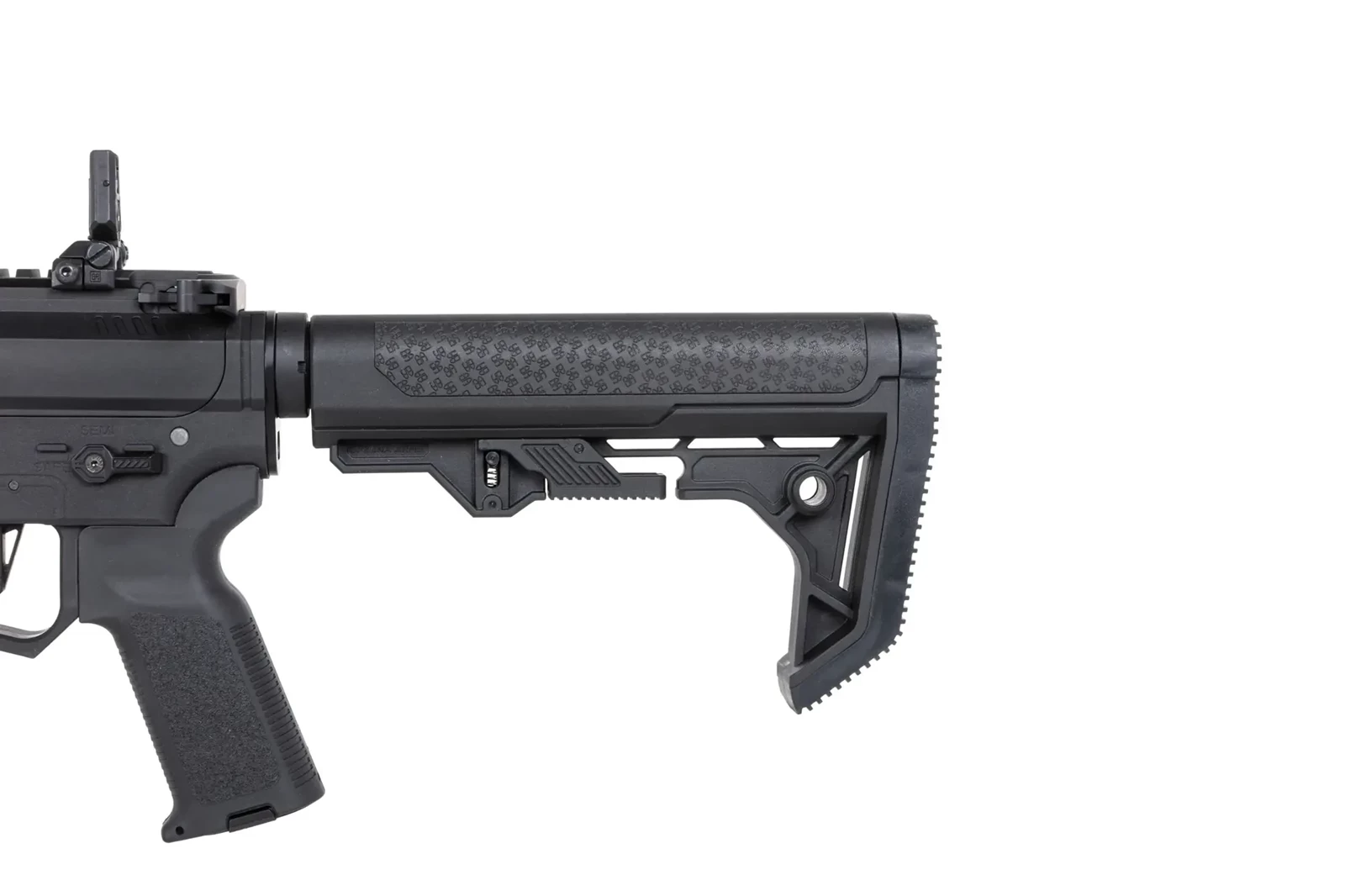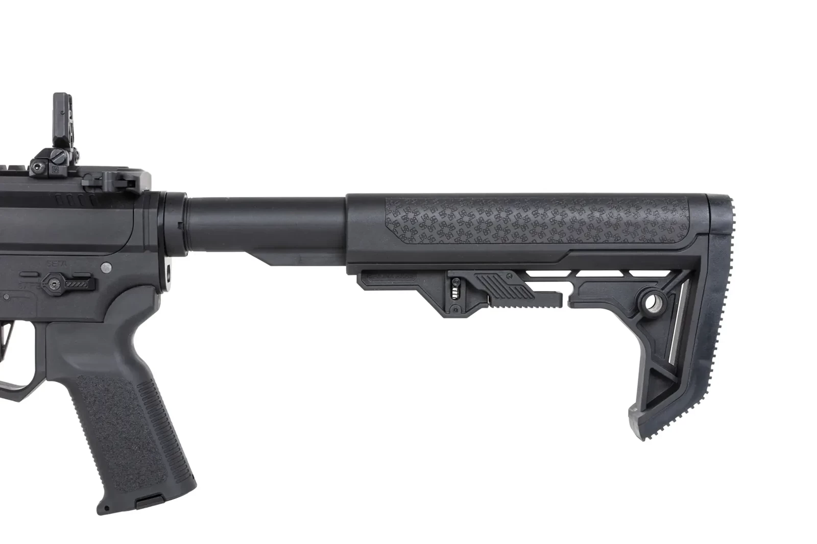 Replika została wyposażona w minimalistyczną kolbę Light Ops Stock. Kolba rozsuwana Light Ops posiada gumowe antypoślizgowe panele po obu pełniące rolę baki policzkowej, oraz charakterystyczną zakrzywioną gumową stopkę kolby, która wygodnie osiada na ramieniu.
