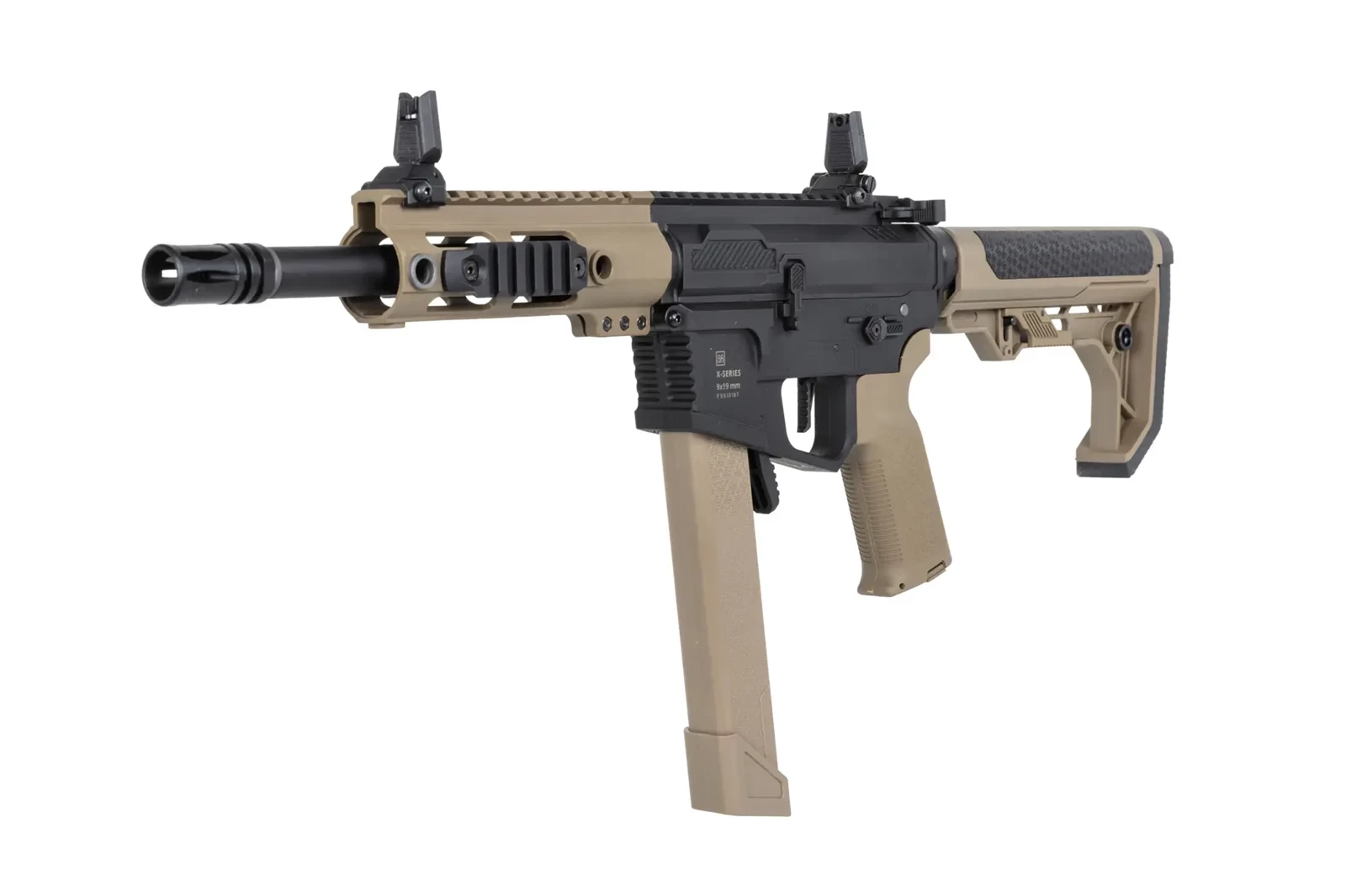 Seria X to odpowiedź Specna Arms na bardzo popularny trend replik pistoletów maszynowych na bazie AR-15. Dzięki kompaktowym rozmiarom i solidnym wykonaniu, replika jest bardzo dobrym wyborem do rozgrywek CQB. Ponadto, replika może sprawdzić się w roli zapasu dla snajpera czy operatora RKM. Co więcej wzmocnienie włóknem nylonowym sprawia, że konstrukcja jest  wytrzymalsza od pozostałych konstrukcji polimerowych.