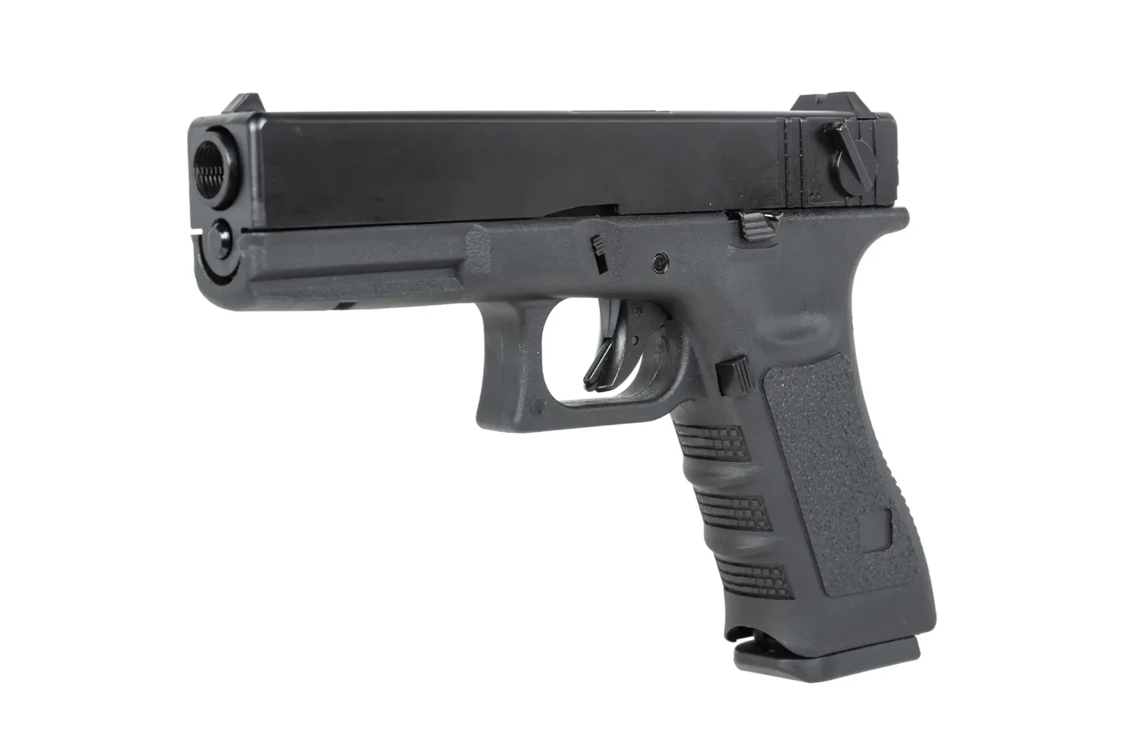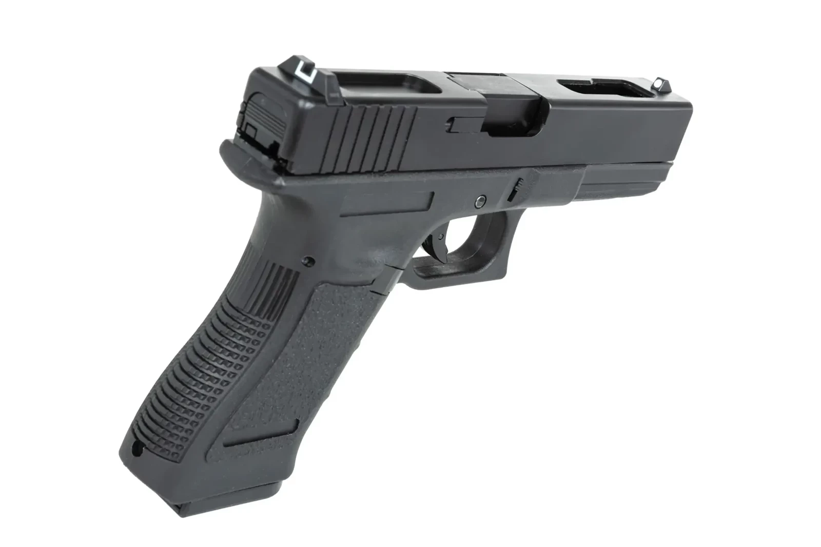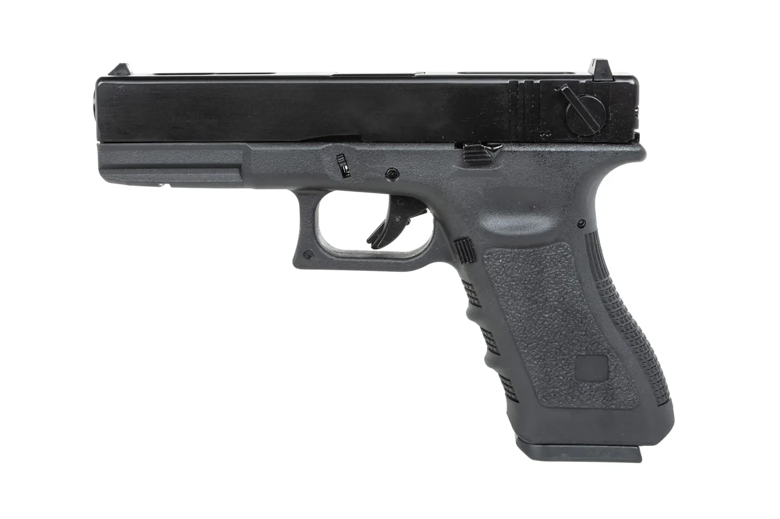 Pistolet został wykonany przy wykorzystaniu metalu oraz tworzywa sztucznego. Z metalu wykonano zamek repliki (zamek posiada wcięcie na szczycie, które dodaje charakteru całości oraz nieco zmniejsza wagę samego zamka), która posiada chropowate nacięcia ułatwiające przeładowanie modelu. Metalowe są również niektóre części wewnętrzne oraz manipulatory (np. zrzut zamka lub przełącznik rodzaju ognia) oraz piny. Dodatkowo z metalu wykonano korpus magazynka. Z wytrzymałego tworzywa wykonano szkielet pistoletu - pod lufą znajdziemy szynę montażową, która pozwoli wyposażyć model w szereg dodatkowych akcesoriów takich jak: latarki czy lasery. Chwyt pistoletowy cieszy się przyjemną, ergonomiczną fakturą, która ułatwi kontrolę nad modelem w każdych warunkach. EC-1103 posiada system Blow Back - każde ściągnięcie spustu powoduje odrzut zamka do tyłu, który napina kurek, a ruch powrotny do przodu wprowadza kulkę do lufy. W sytuacji, w której w magazynku nie ma kulek, zamek pozostaje w tylnym położeniu. Jego zwolnienie możliwe jest po ściągnięciu dźwigni zrzutu zamka.
