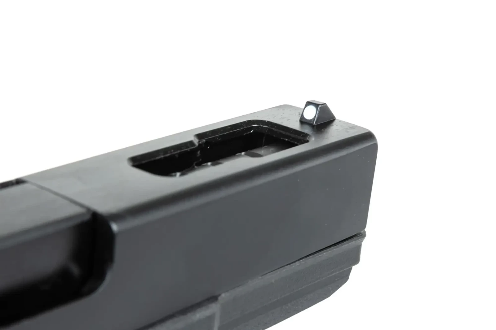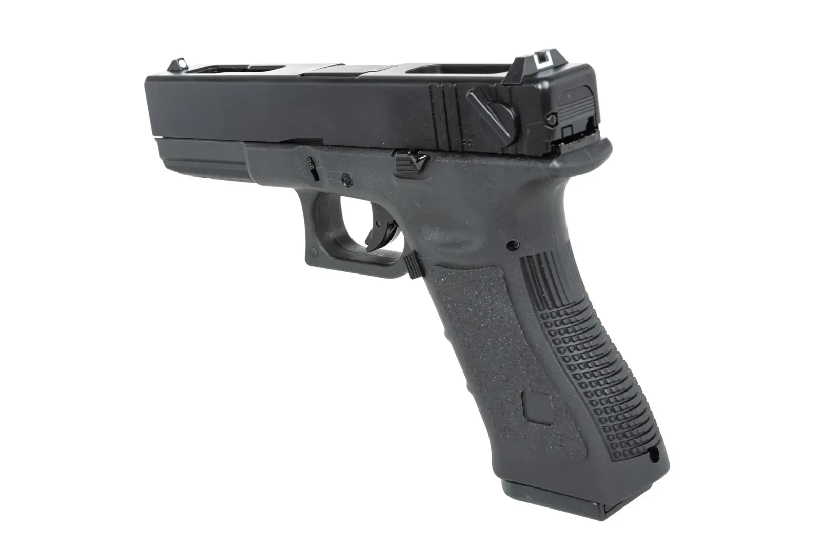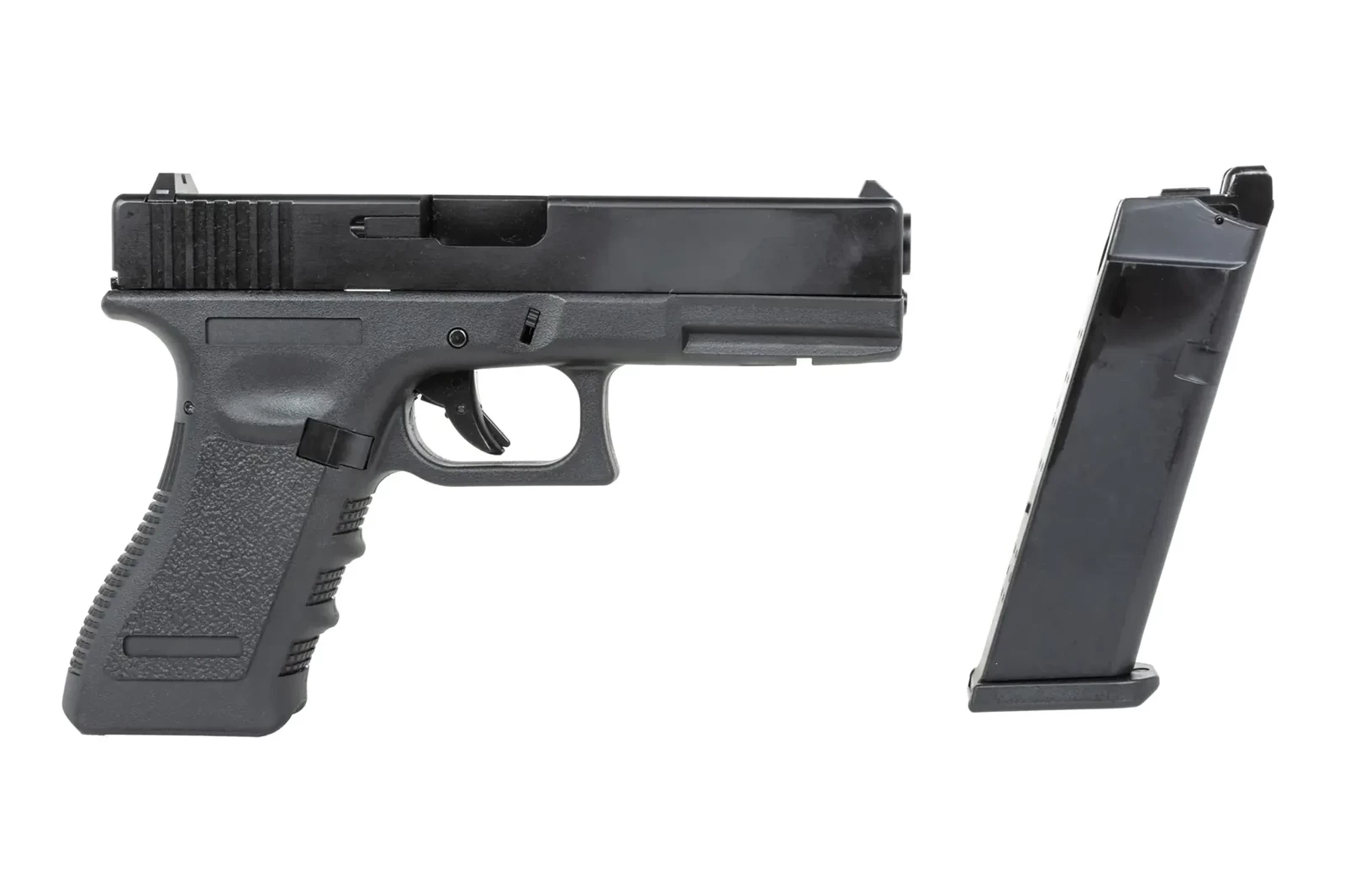 Pistolet został wykonany przy wykorzystaniu metalu oraz tworzywa sztucznego. Z metalu wykonano zamek repliki (zamek posiada wcięcie na szczycie, które dodaje charakteru całości oraz nieco zmniejsza wagę samego zamka), która posiada chropowate nacięcia ułatwiające przeładowanie modelu. Metalowe są również niektóre części wewnętrzne oraz manipulatory (np. zrzut zamka lub przełącznik rodzaju ognia) oraz piny. Dodatkowo z metalu wykonano korpus magazynka. Z wytrzymałego tworzywa wykonano szkielet pistoletu - pod lufą znajdziemy szynę montażową, która pozwoli wyposażyć model w szereg dodatkowych akcesoriów takich jak: latarki czy lasery. Chwyt pistoletowy cieszy się przyjemną, ergonomiczną fakturą, która ułatwi kontrolę nad modelem w każdych warunkach. EC-1103 posiada system Blow Back - każde ściągnięcie spustu powoduje odrzut zamka do tyłu, który napina kurek, a ruch powrotny do przodu wprowadza kulkę do lufy. W sytuacji, w której w magazynku nie ma kulek, zamek pozostaje w tylnym położeniu. Jego zwolnienie możliwe jest po ściągnięciu dźwigni zrzutu zamka.